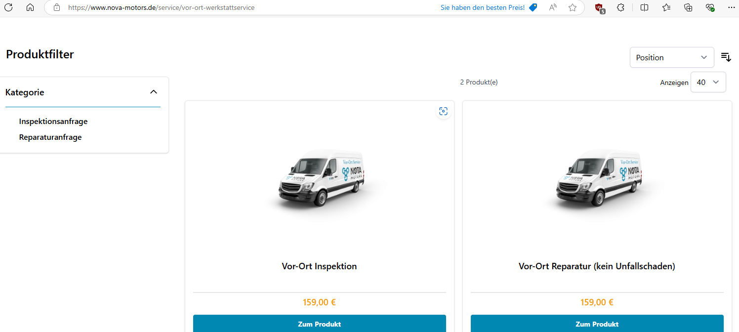 Auf der Nova-Homepage steht 159 Euro für Vor-Ort Inspektion und Vor-Ort Service. Da ist dann 30 Minuten Arbeitszeit drin. Die Anfahrt kostet also 129 Euro.