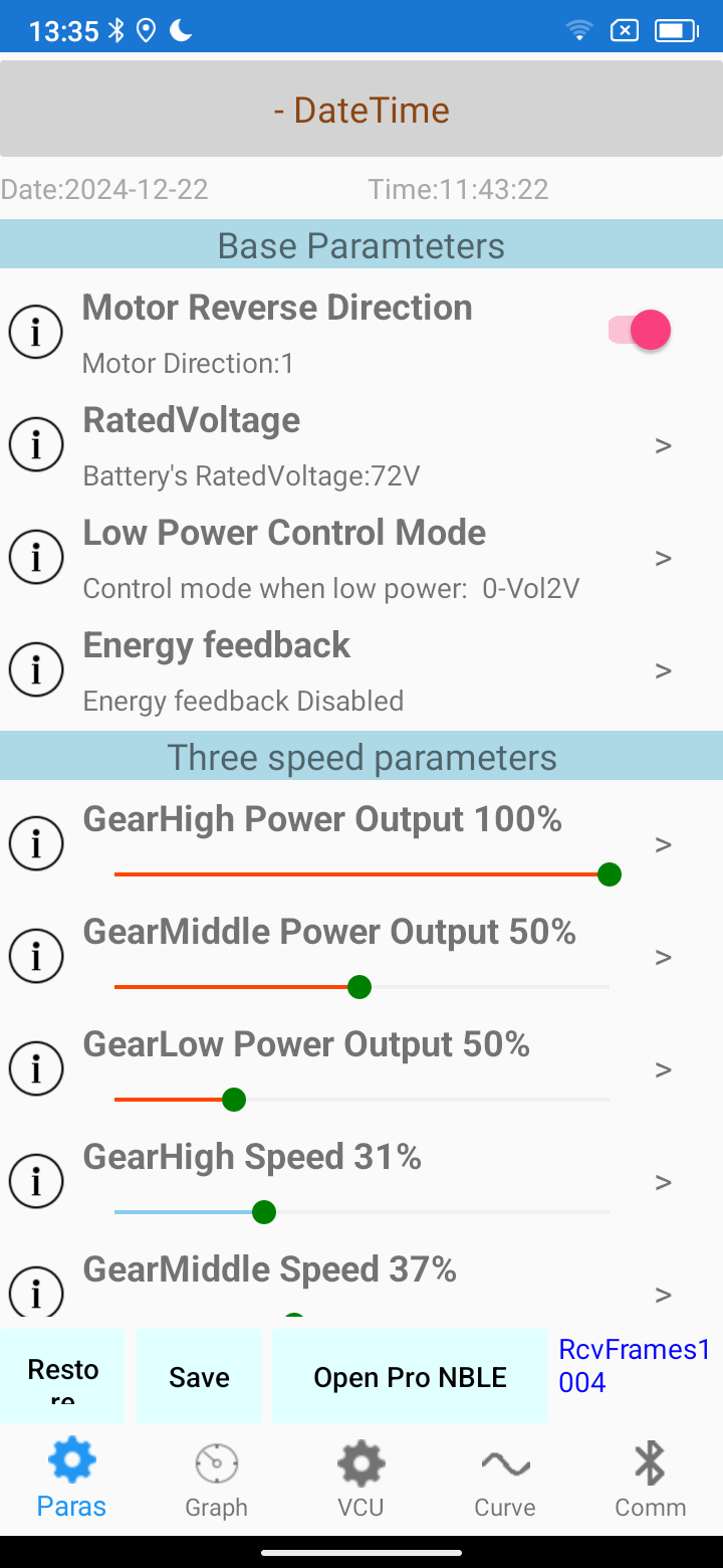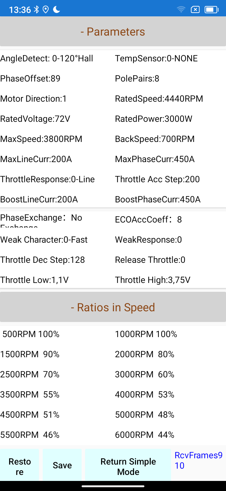 Mit den aktuellen Einstellungen würde der Controller 12-13kw an den Motor raus geben. Das wäre mir für ein schweres Gefährt erst mal zuviel.