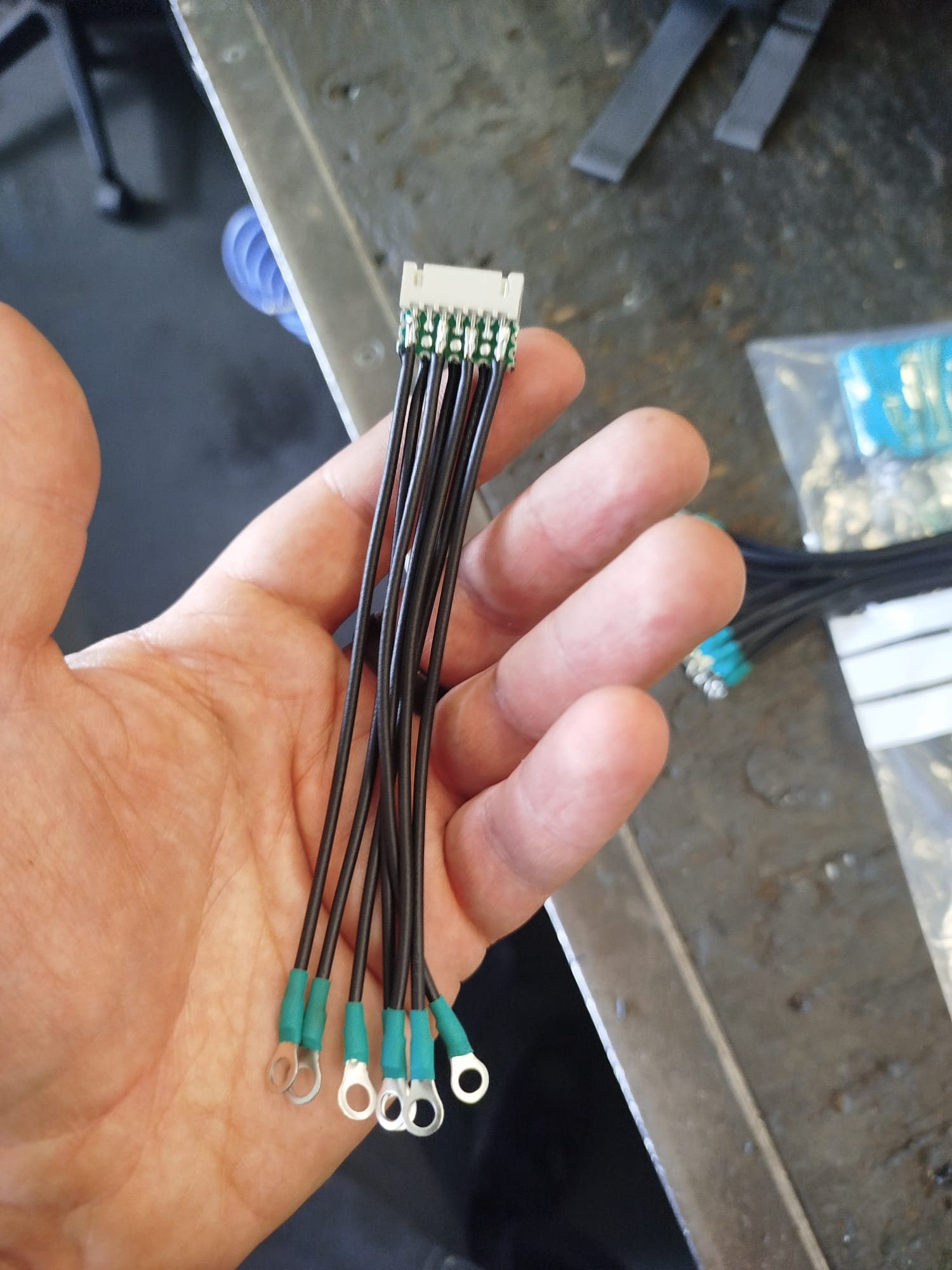 Dann habe ich neue BMS Leitungen gebaut, da die Leiterbahn auf der Platine durchgeschmort ist. Dazu habe ich Ringkabelschuhe für m4 verwenden und 0,75mm² Zuleitungen. Ich denke damit sollte der schlechte Kontakt zu den Zellen behoben sein.