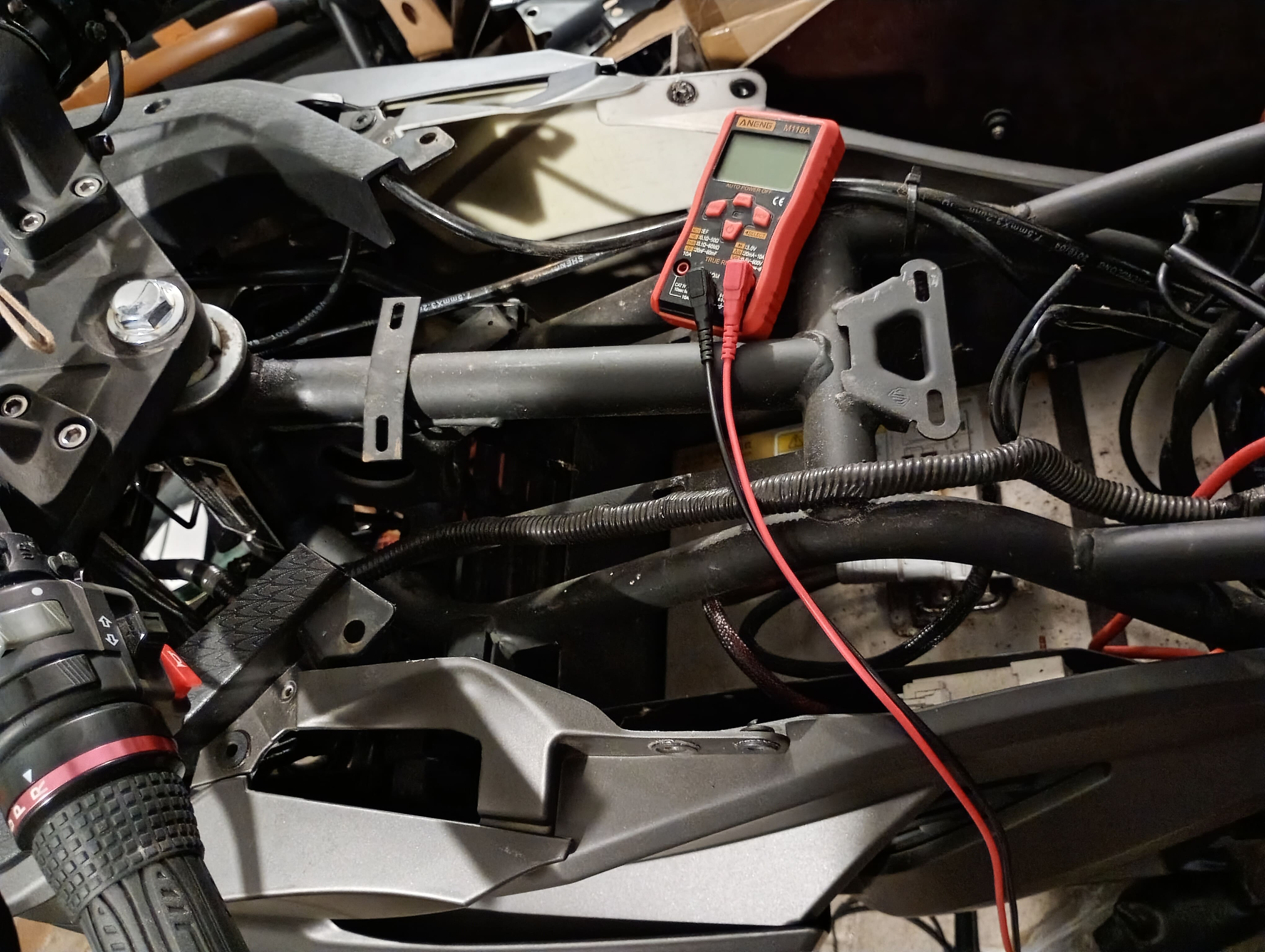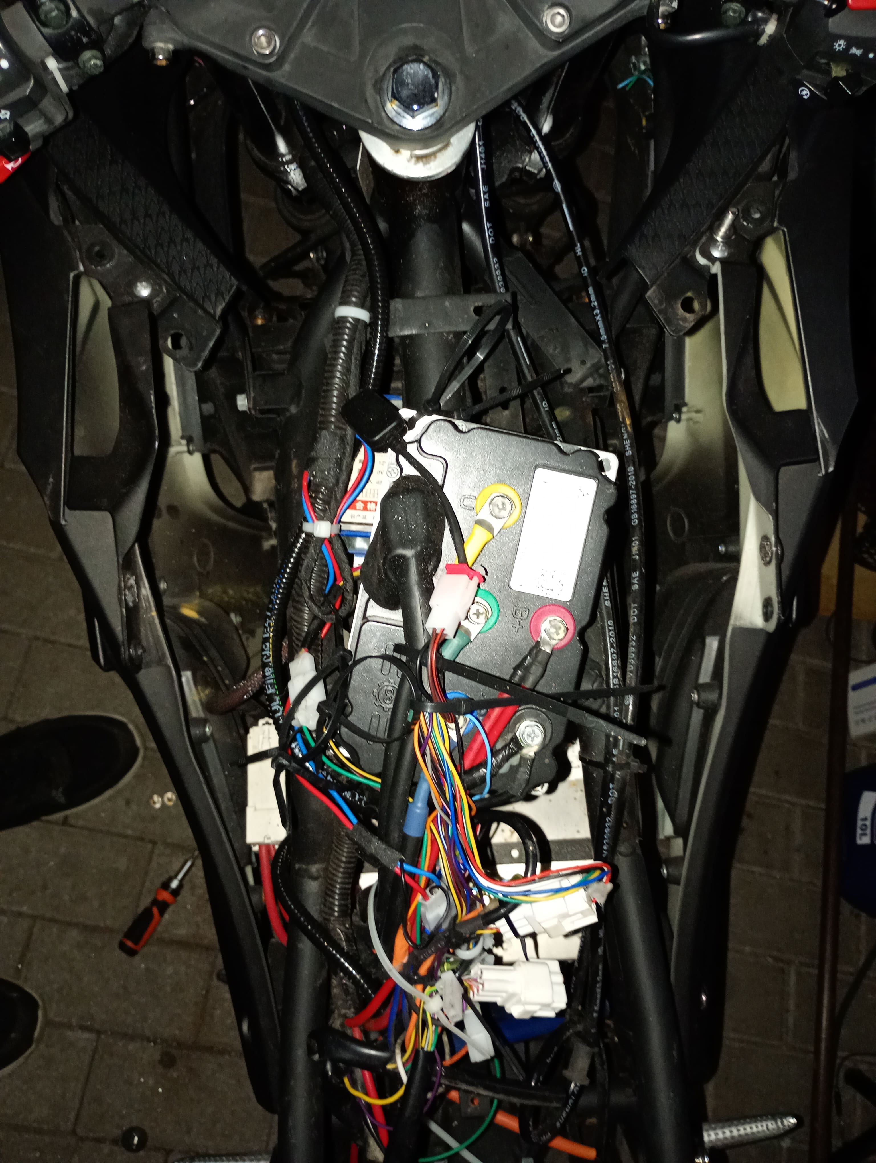 Ich hatte überlegt ob ich den Controller von der jetzigen Position (Unter dem Tank) weiter nach hinten unten verlege, unter dem Fahrersitz ist noch Platz der unbelegt ist. Da passt der Controller und 12v Wandler hin, vom Kabelbaum passt es ebenfalls. Dann wäre unter dem Tank genug Platz für Ladegeräte ( aktuell wäre es nur das mitgelieferte, später falls es zum Akkuumbau in Richtung LFP kommt dann 3 Phasig mit je 3KW).