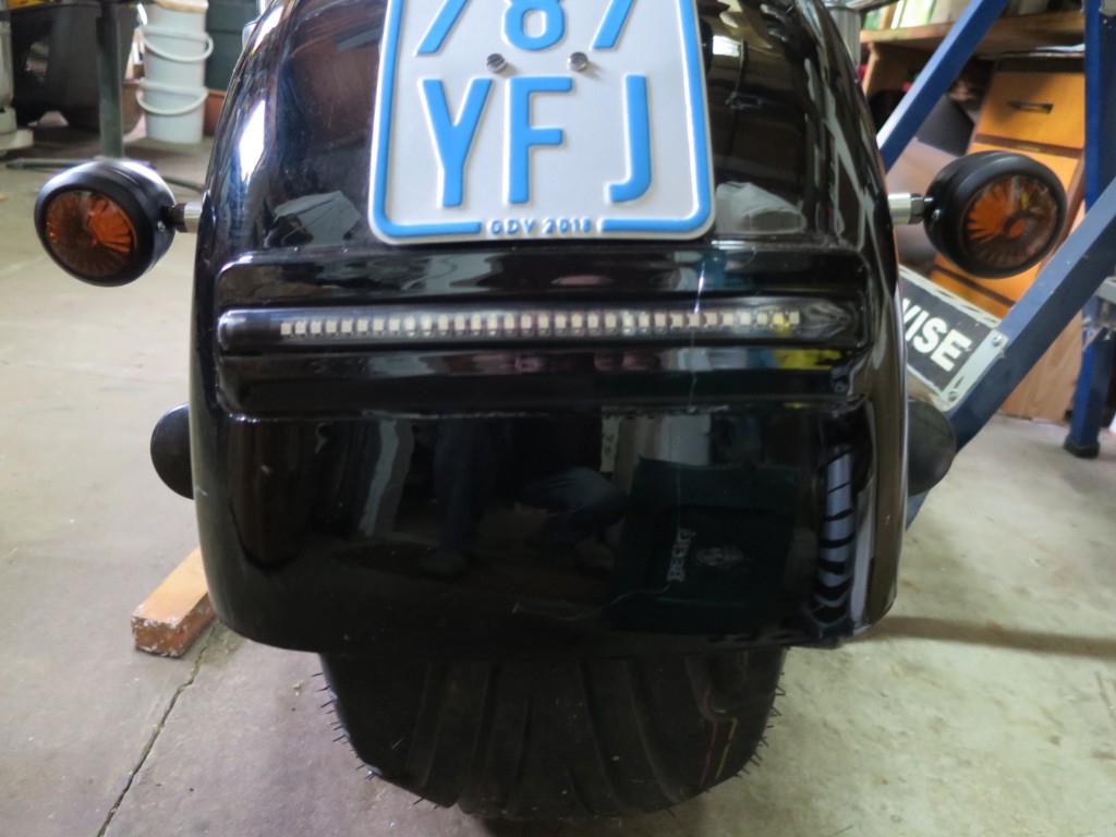 bei der Harley sind die hinteren Blinker im LED-Streifen nach dem EG-Recht zu dicht beieinander.