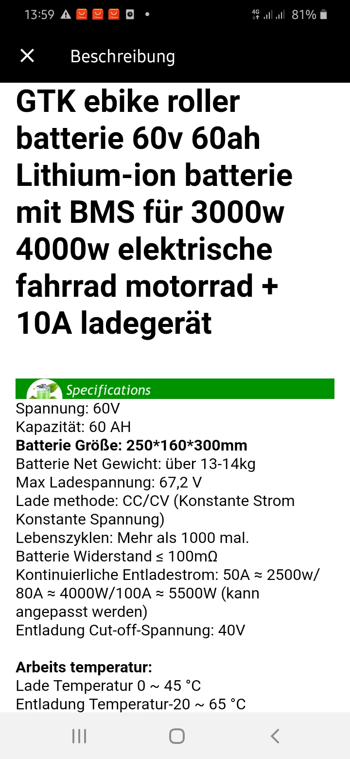 Deshalb hatte ich auch schon mit dem Akku geliebäugelt,aber jetzt mit dem China Schnelllader komme ich sehr gut zurecht.