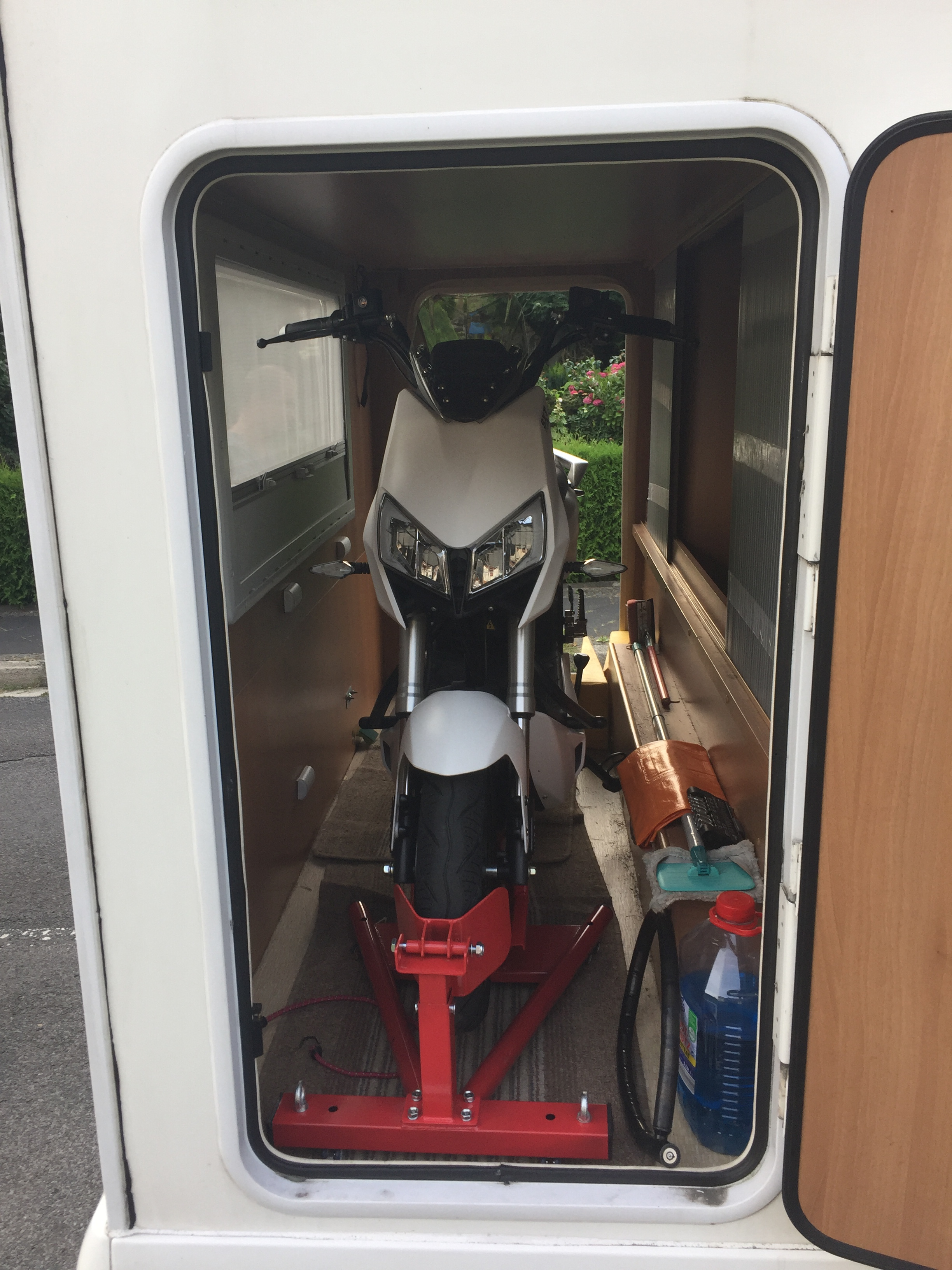 Aber das ist ja mal ne amtliche Garage so hinten im Wohnmobil. Und der Bike-Ständer - auch nicht übel.