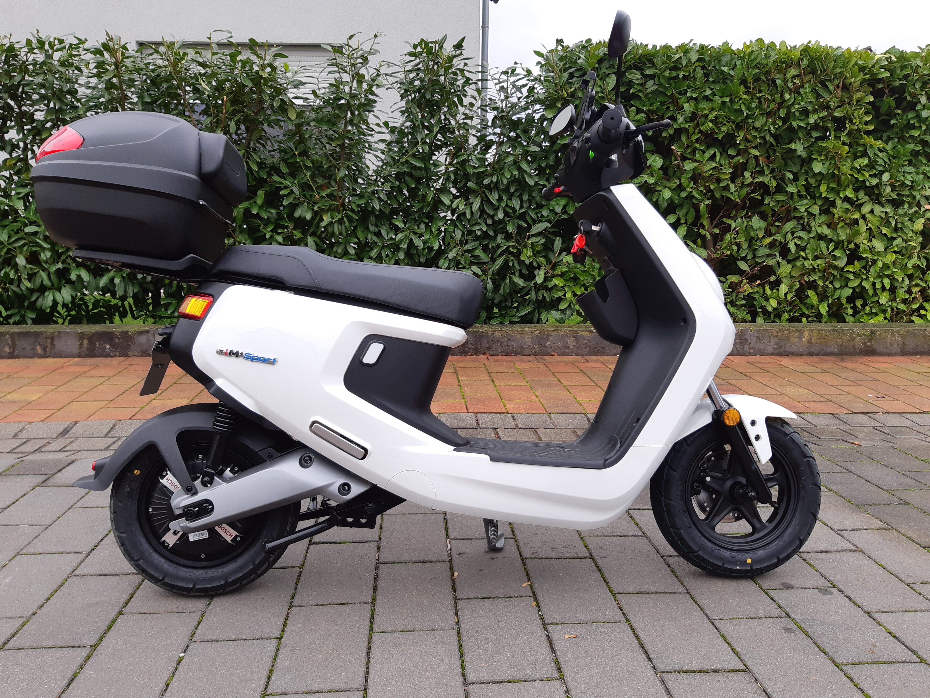 Anbei ein Bild von meinem weißen M+ mit Givi Topcase. Auch von mir ein dickes Lob an die Niu Store Frankfurt. Ich habe meinen leider aufgrund der Distanz nicht dort gekauft, aber ich wurde dort top beraten. Auch hatte man mich dort als einziger Shop, von dreien die ich besucht habe, auf die Indiegogo Pre-sale Campain hingewiesen und hat mir diese empfohlen. Die anderen Händler wußten angeblich nichts davon oder streuten große Zweifel an dem Liefertermin ein. Auch wurde mein Roller ohne die aktuelle OTA Version ausgeliefert und lief (oder zeigte an?) nur 41km/h. Ein Anruf beim Niu Store Frankfurt und ich bekam den entscheidenden Tip. Nur als Tip an alle die sich auch über die zu geringe Geschwindigkeit wundern und einen ähnlich kompetenten Händler haben wie ich :( .