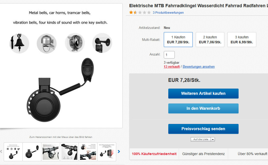 Also Ebay Klingel gekauf, montieren musste ich nix, Klang 4 verschiedene Varianten samt Fahrradklingel