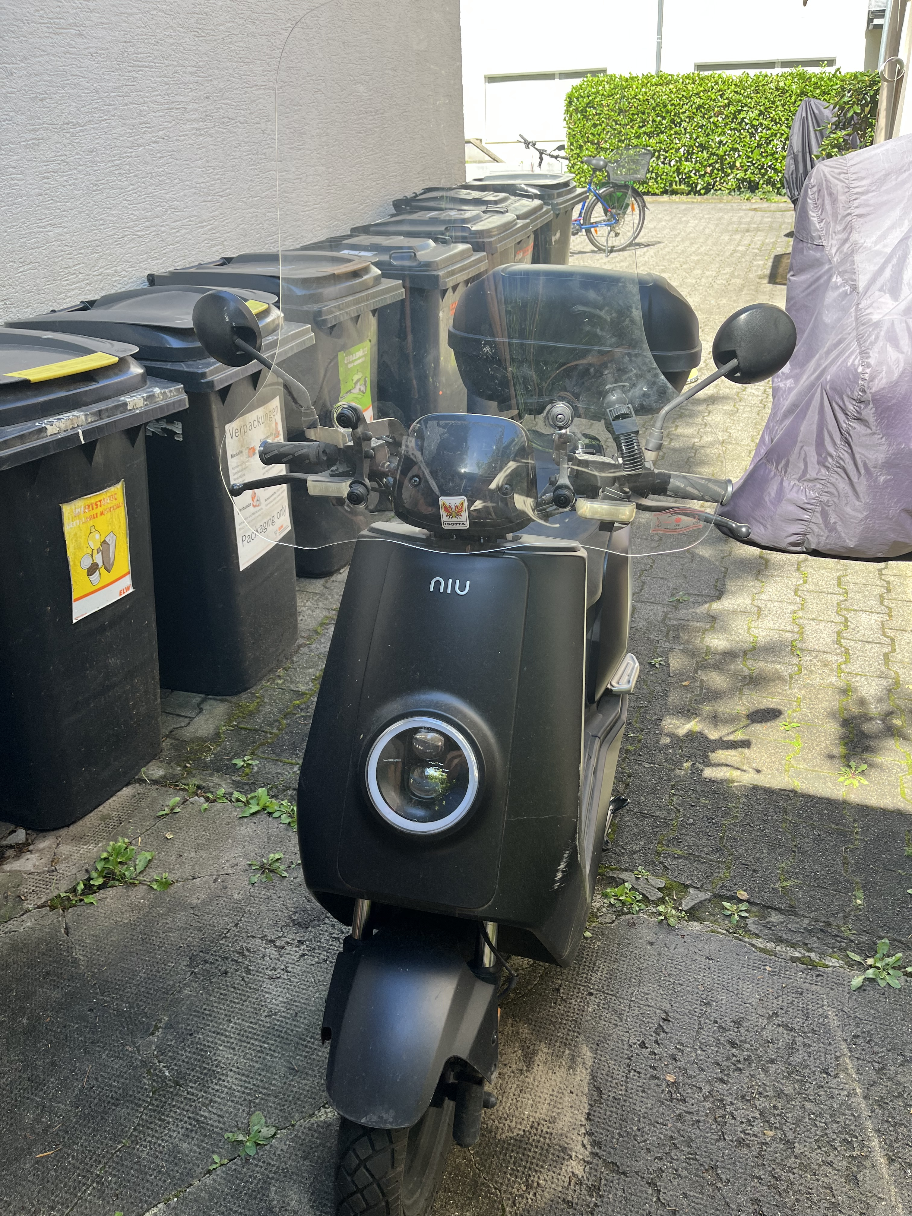 Die Isotta Scheibe ist heute angekommen. Die Montageanleitung ist auf italienisch, die Bilder suboptimal. Bin mal gespannt wie lange das dauert bis das Teil am Niu ist. Gerade bekomme ich Zweifel ob die überhaupt dran passt, weil auf den Bildern garkeine Spiegel zu sehen sind - am Ende passt die Scheibe nur ohne Spiegel an den Lenker?
