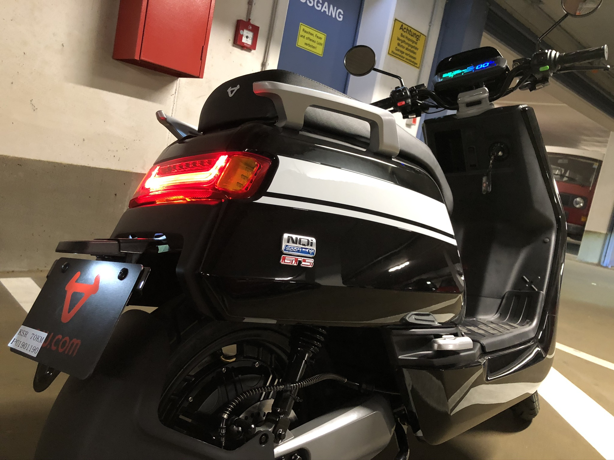 Wenn ich das direkt beim Niu-Händler in Auftrag gebe, schlägt der auch nochmal einen Zehner oben drauf, aber das wiederum finde ich in Ordnung, dafür dass der dann einen Teil des Papierkrams macht.