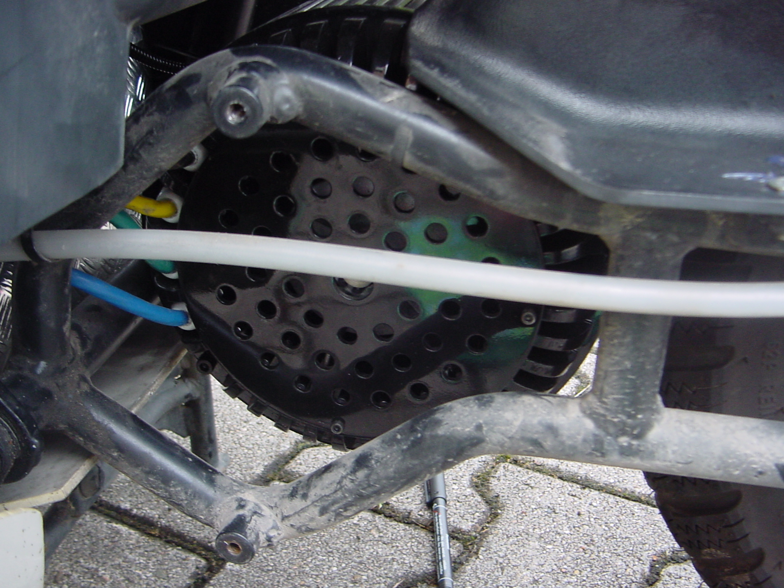 So ähnlich sollte ein auf 5kW GoldenMotor umgerüsteter vR one aussehen. Von links, ohne Schwingenverkleidung: