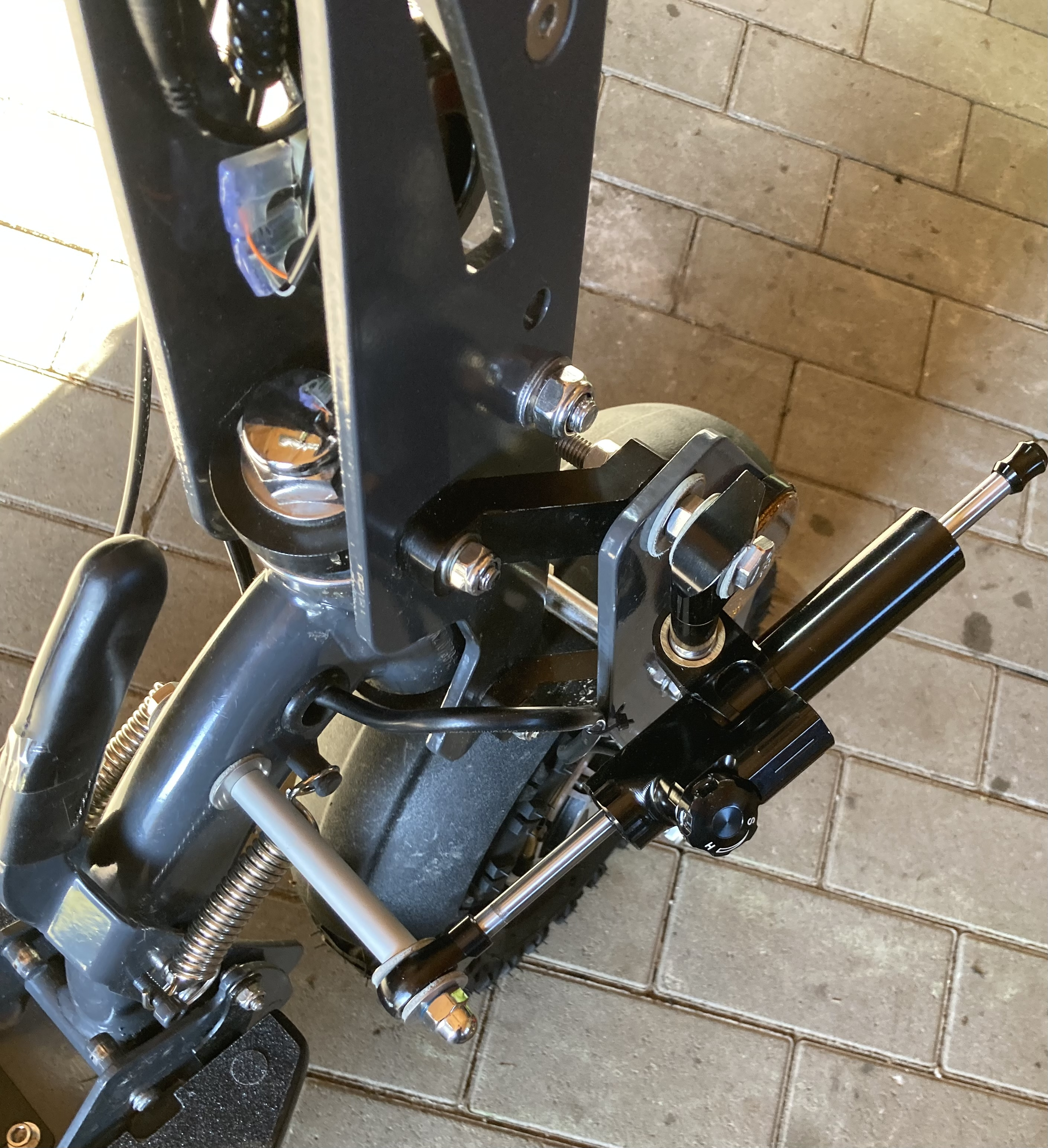 Anbei der Dämpfer angebaut. Funktioniert prima und ist wirklich ein deutlich angenehmeres und sicheres fahren ! Kein Vergleich zu vorher- eher wirklich wie ein großer erwachsener Roller