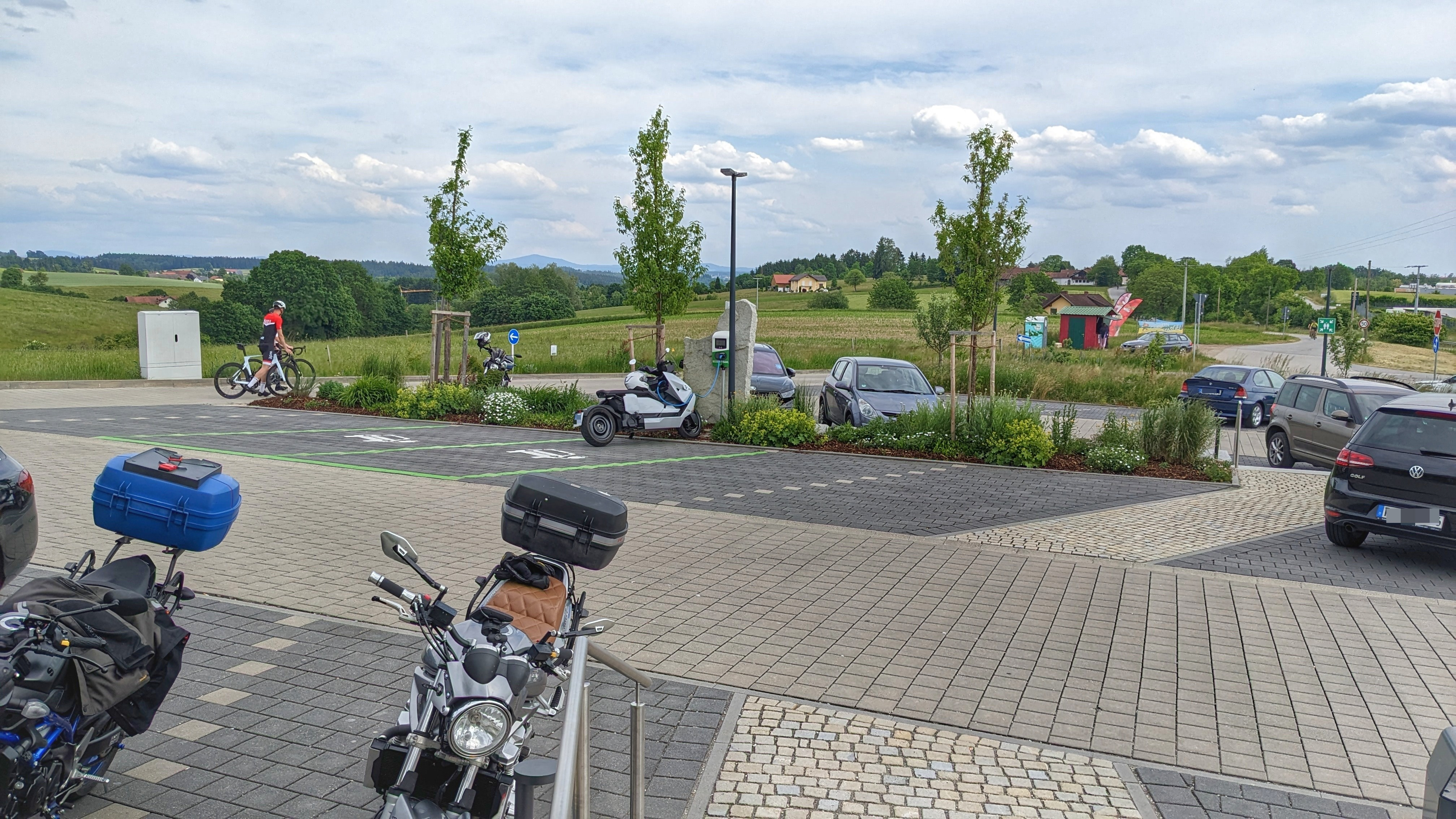Mal wieder eine Runde im bayerischen Wald. Idealer, wunderbarer Ort für eine Ladepause: das waldgeschichtliche Museum Sankt Oswald mit vier Ladestationen am Parkplatz nebenan.
