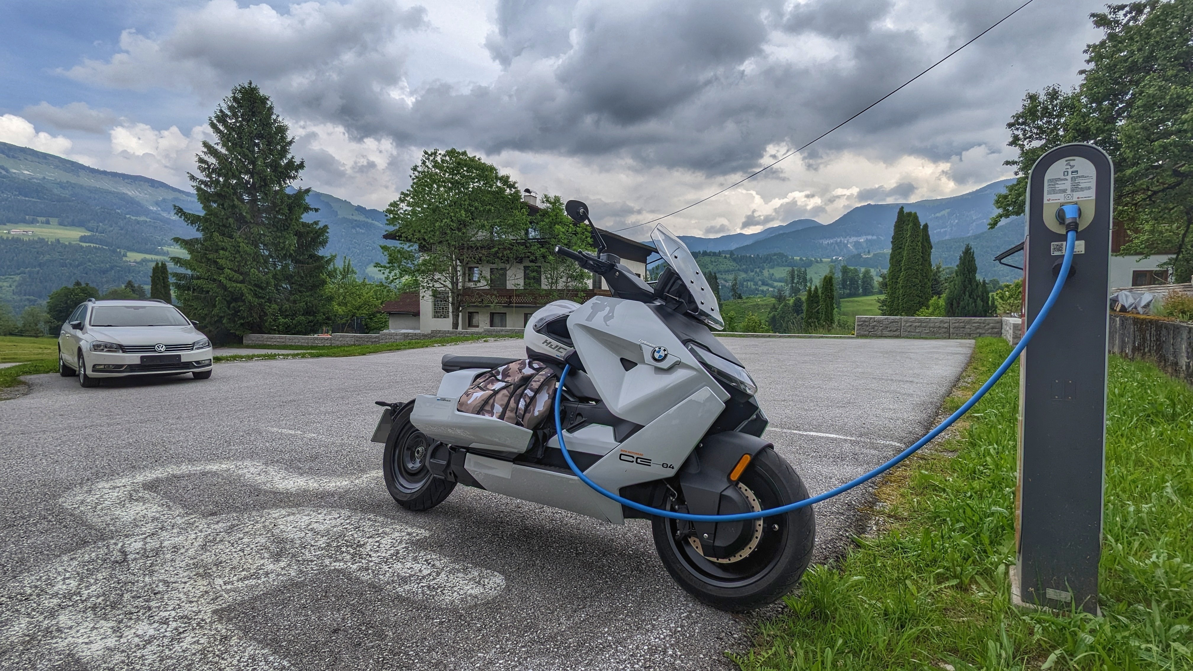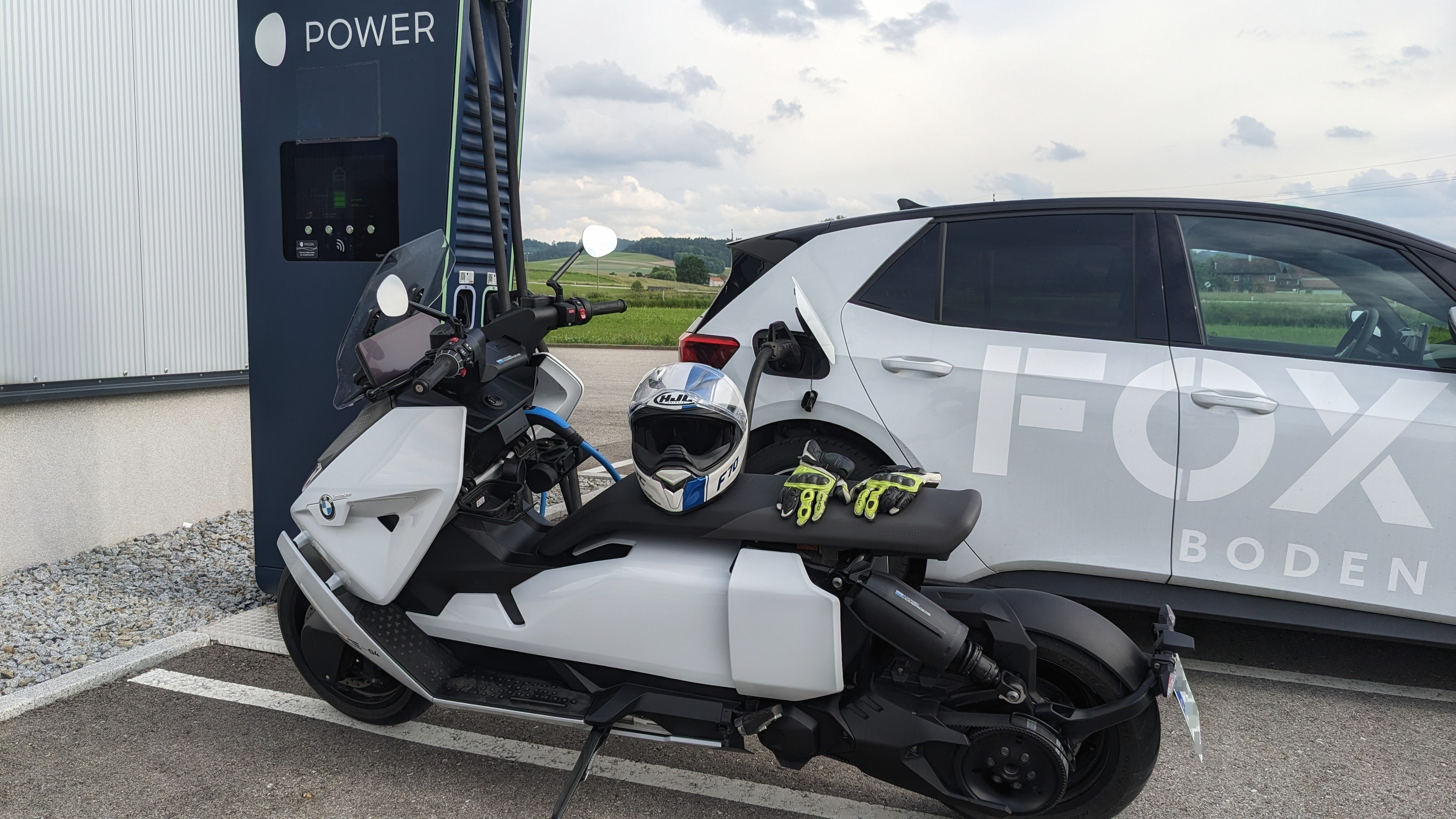Es ist ein witziger Spagat. Zum einen diese typischen superlauten Proll TMax,.die einem echt auf den Sack gehen, selbst in der gestrengen Schweiz. Volle Beschleunigung mit 110Db in der City, im Duett mit röhrenden Ferraris. Toxisch maskulin. Daneben cooles und völlig selbstverständliches Roller-Commuting mit allem was zwei Räder hat. CE04 fällt hier nicht auf.