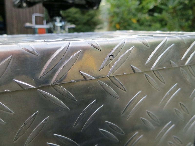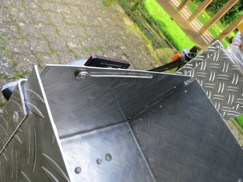Die Beiden Scharniere noch annieten und die Box ist schon fast fertig. Als Verriegelung habe ich innen einen federnden Draht angenietet.
