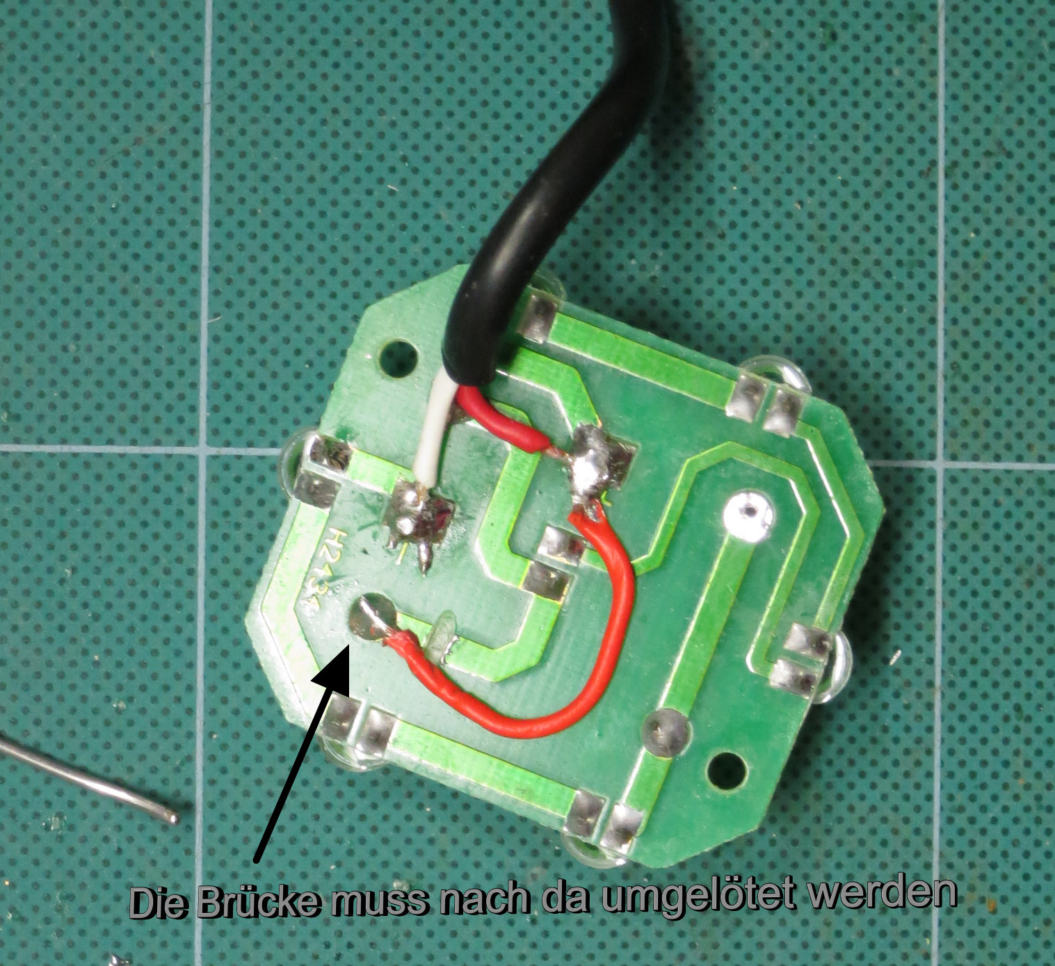 Leider war mit der Umrüstung kein Fachmann betraut worden, denn eine Kabelbrücke war falsch angelötet worden.