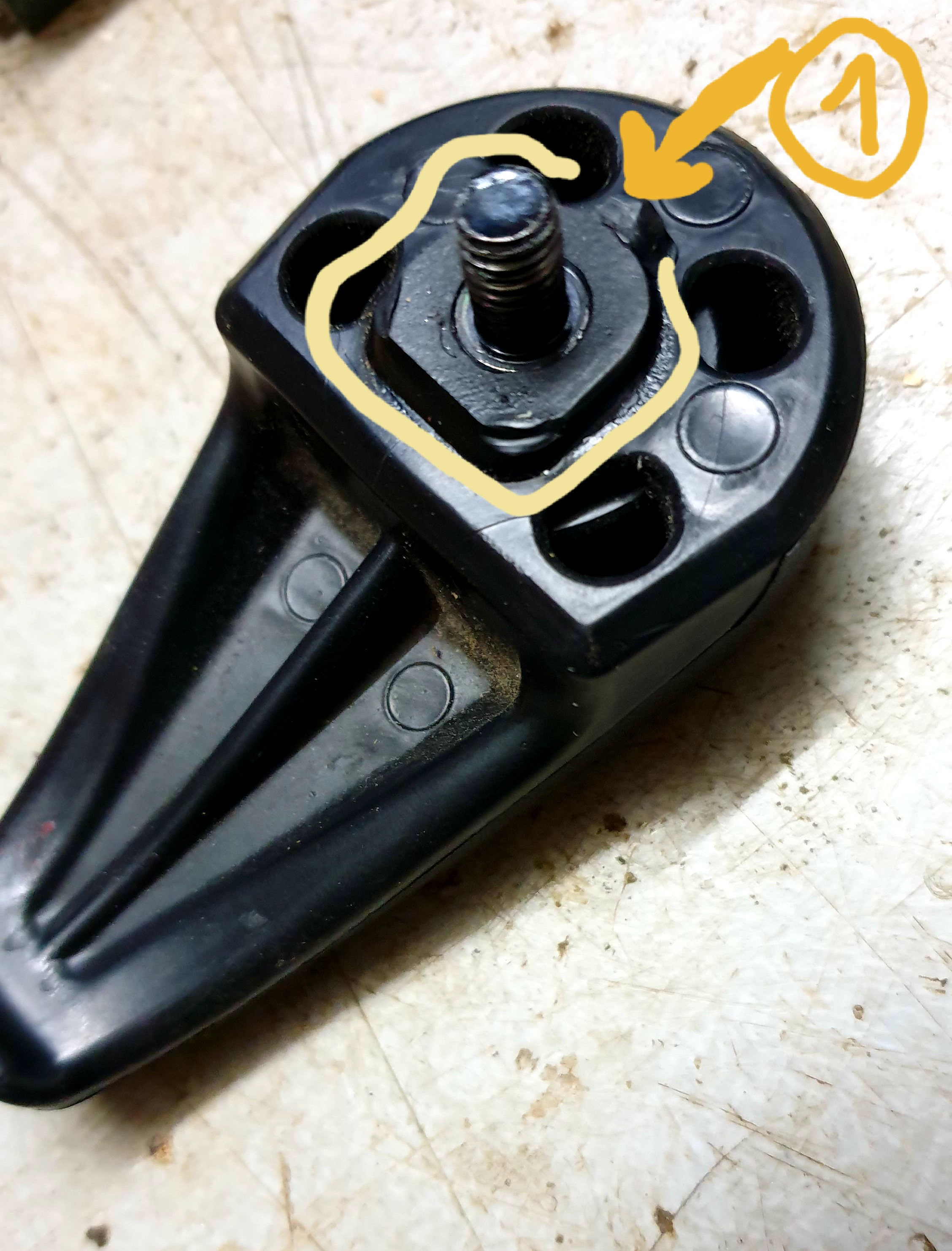 nicht einfach flächig draufgeschraubt, sondern so designed, dass er nicht verrutschen kann und die Schraube sich nicht so schnell löst. Mit ein wenig mehr Plastik spart man sich auch eine Schraube...