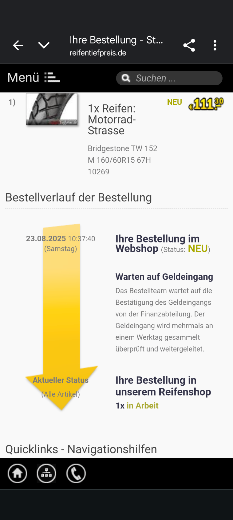 Rad aus. Einbau+Reifen de. Montage+Altreifen entsorgung kostet 98.00€.