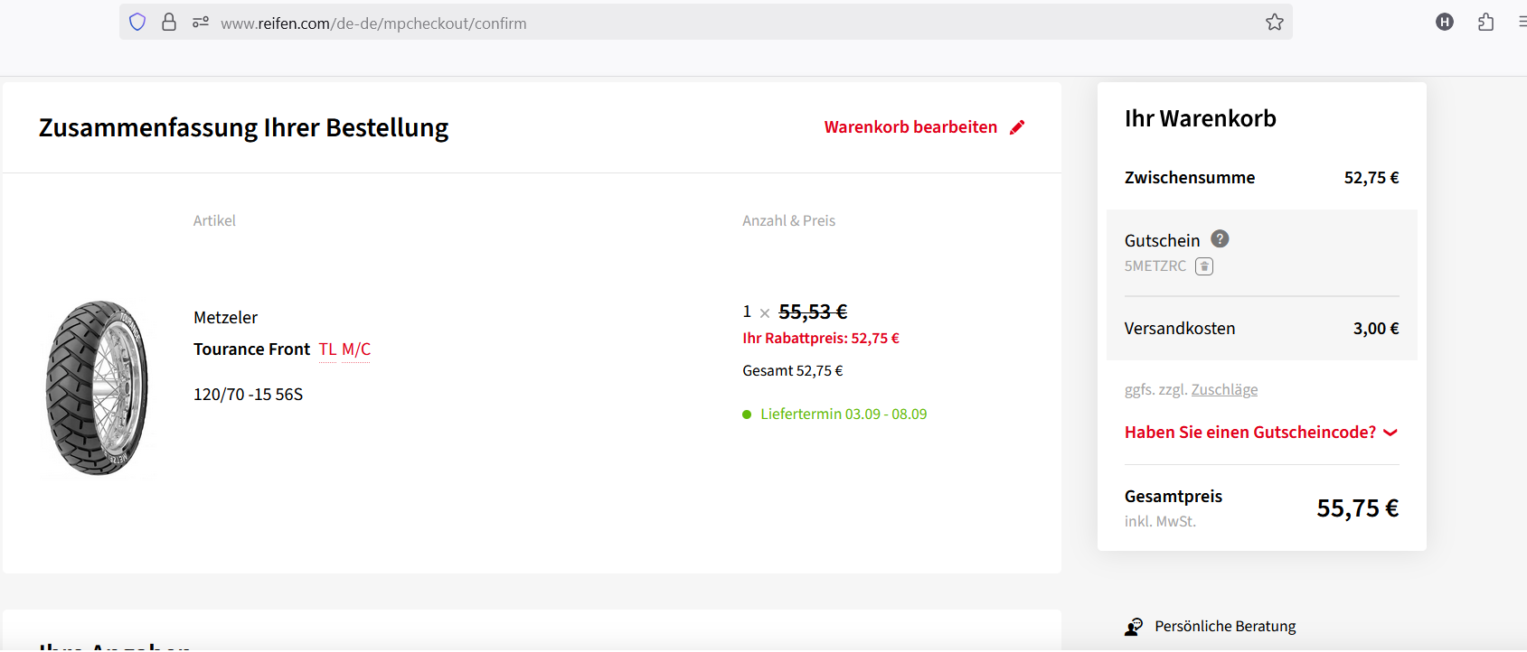 tuxian hat geschrieben: Mi 20. Mär 2024, 09:27 Mein BMW Händler hat mir nun zwei neue Pirelli Diablo Rosso Scooter um €343 inkl. Montage angeboten.