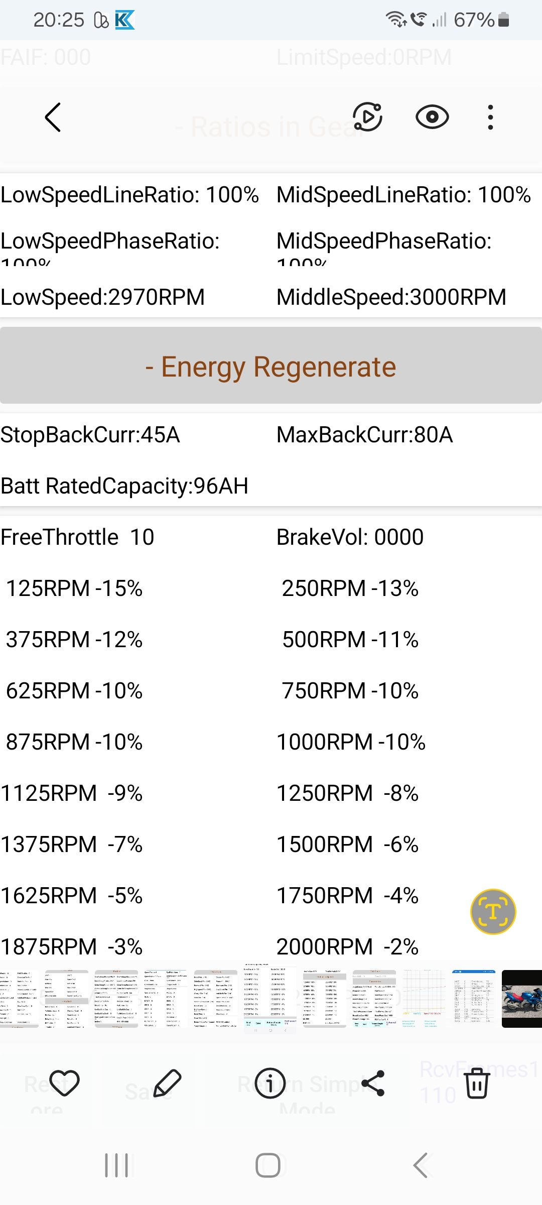 3. Möglich, habe ich aber nicht bemerkt das die Reku über den Bremshebel aktiviert wird. Aktuell habe ich alle RPMs mit 100% hinterlegt. Wie geschrieben ist die Reku so gering das praktisch eh immer dazu bremsen musst. Möglicherweise sind auch die Stop und MaxBackCurrent Werte zu niedrig für die Wildfire aber ehrlich gesagt traue ich mich nicht die zu erhöhen ohne das ich da von einer gescheideren Instanz was dazu gehört habe.