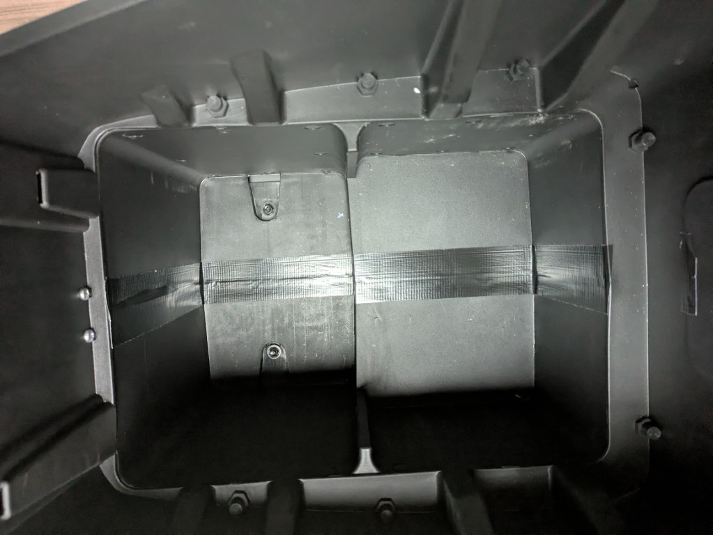 Es steht kaum zu befürchten, dass die Akkus bei der einer der nächsten eintausend Bodenwellen den Roller nach unten verlassen würden, aber mittelfristig würde ich doch eine Eheberat... nein, ein Stück Flacheisen und vier Schrauben wären mein Vorschlag.