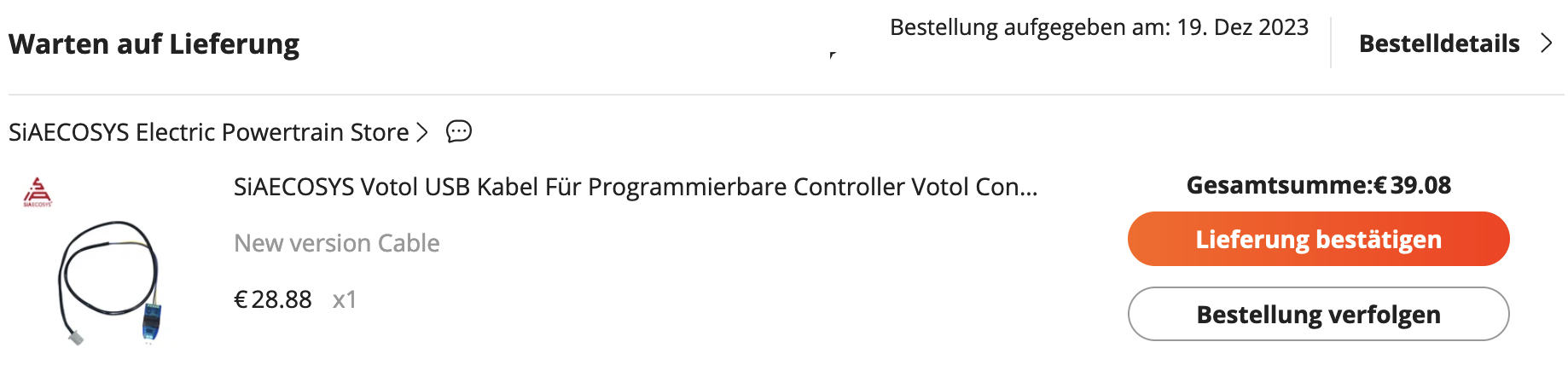 Ich wollt's nochmal wissen, denn "aller guten Kabel sind Drei" - diesmal vom Original(?) SIA-Ecosys-Shop bei Aliexpress: