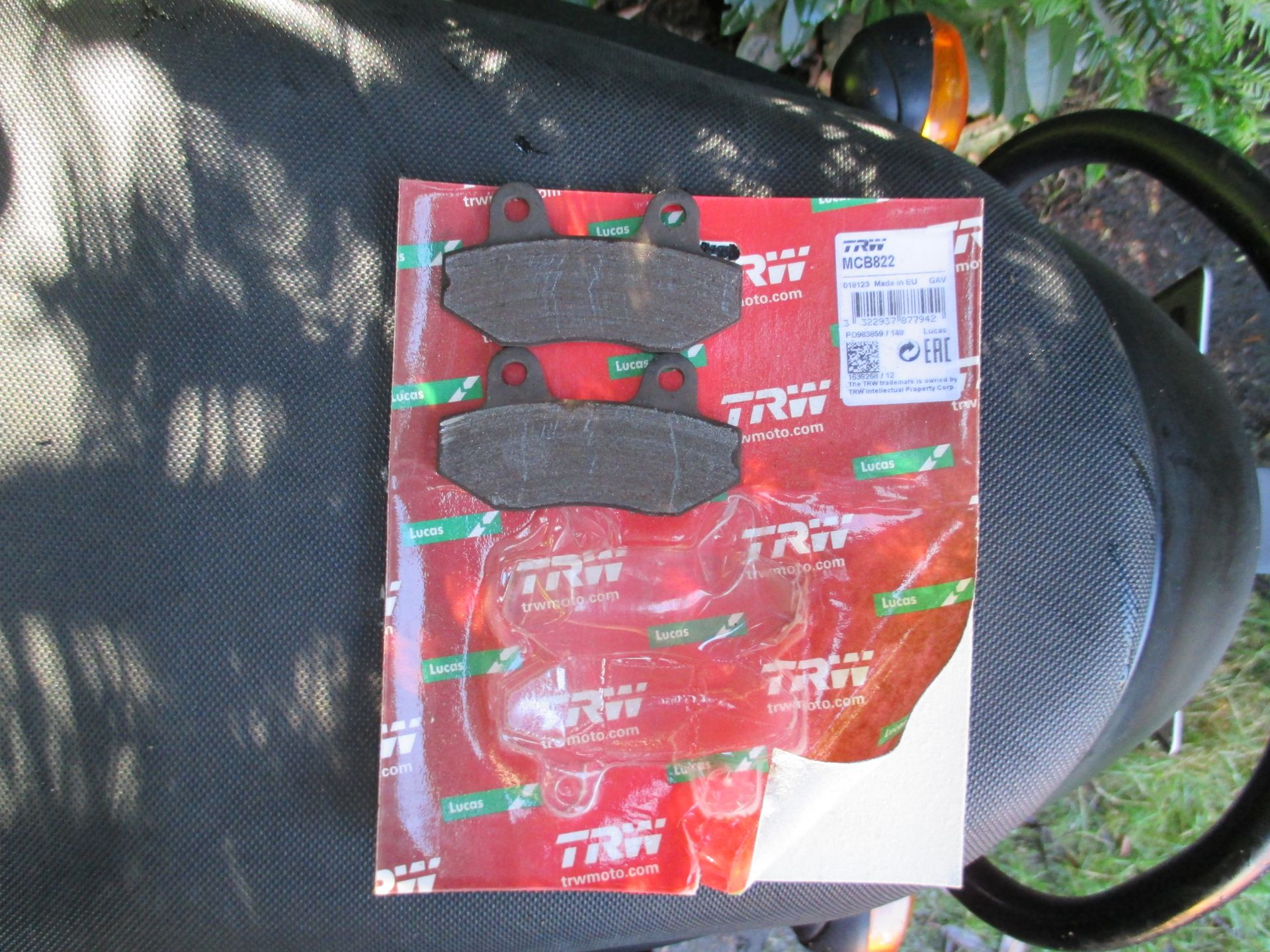 Der Belag der feststehenden Seite war etwas weiter 'runter als der auf der Zweikolbenseite. Auf der to do Liste für November bis Februar steht noch die Kontrolle des LKL an sowie ein Wechsel der beiden Schwingmetalllager (silent blocs) der Einarmschwinge - sicher ein größerer Aufwand.