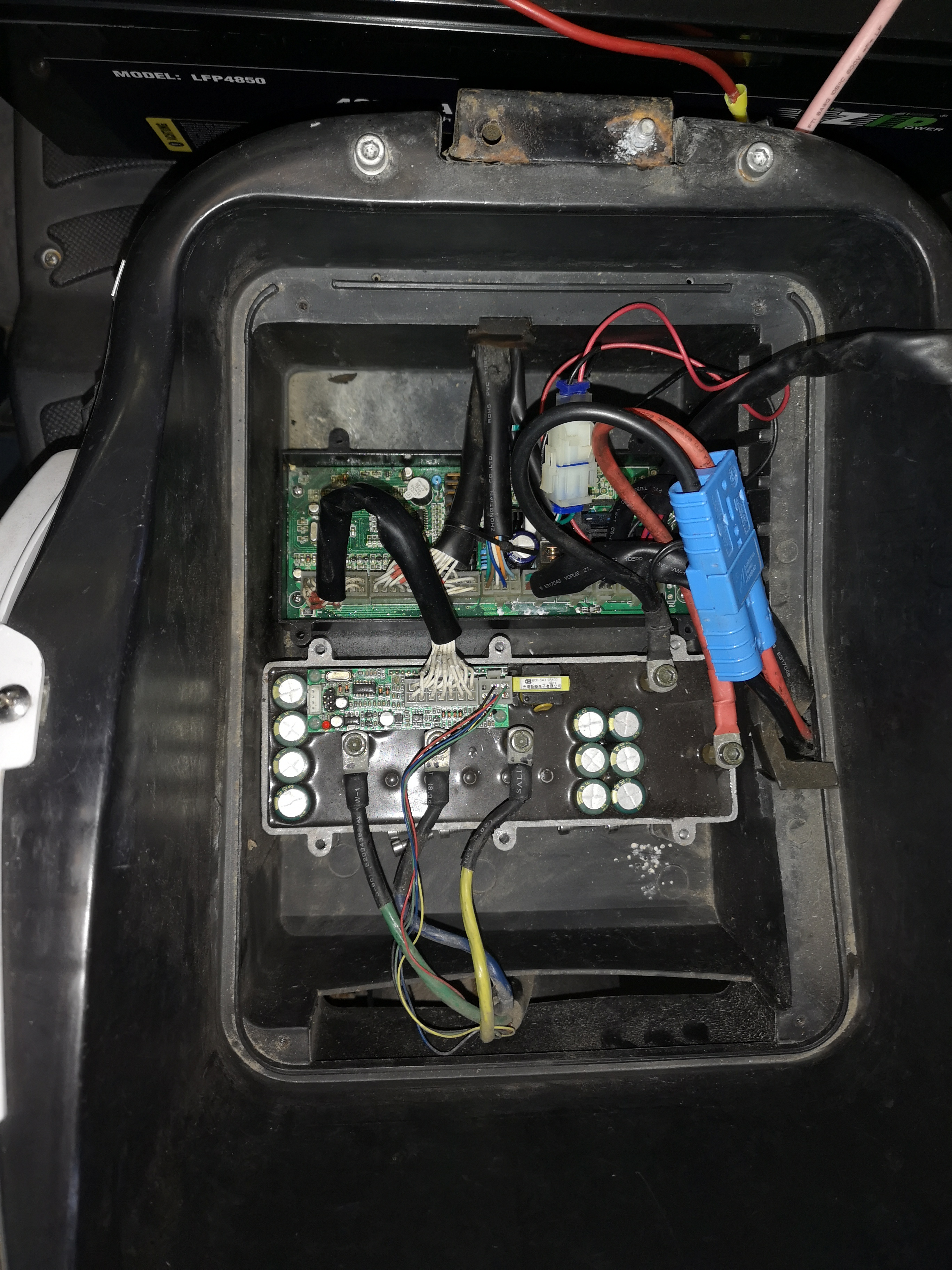 1. Das ist ein proud eagle Controller. Leider ist dieser Controller defekt ((over current Fehler). Auf der ManagementSystemUnit sitzt der DC DC 48V auf 12V (leider nur als Zerhackertransistor 48V auf 12V ausgeführt) sowie das Blinkrelais. Licht etc. wird über 7 Schalttransistoren geschaltet.