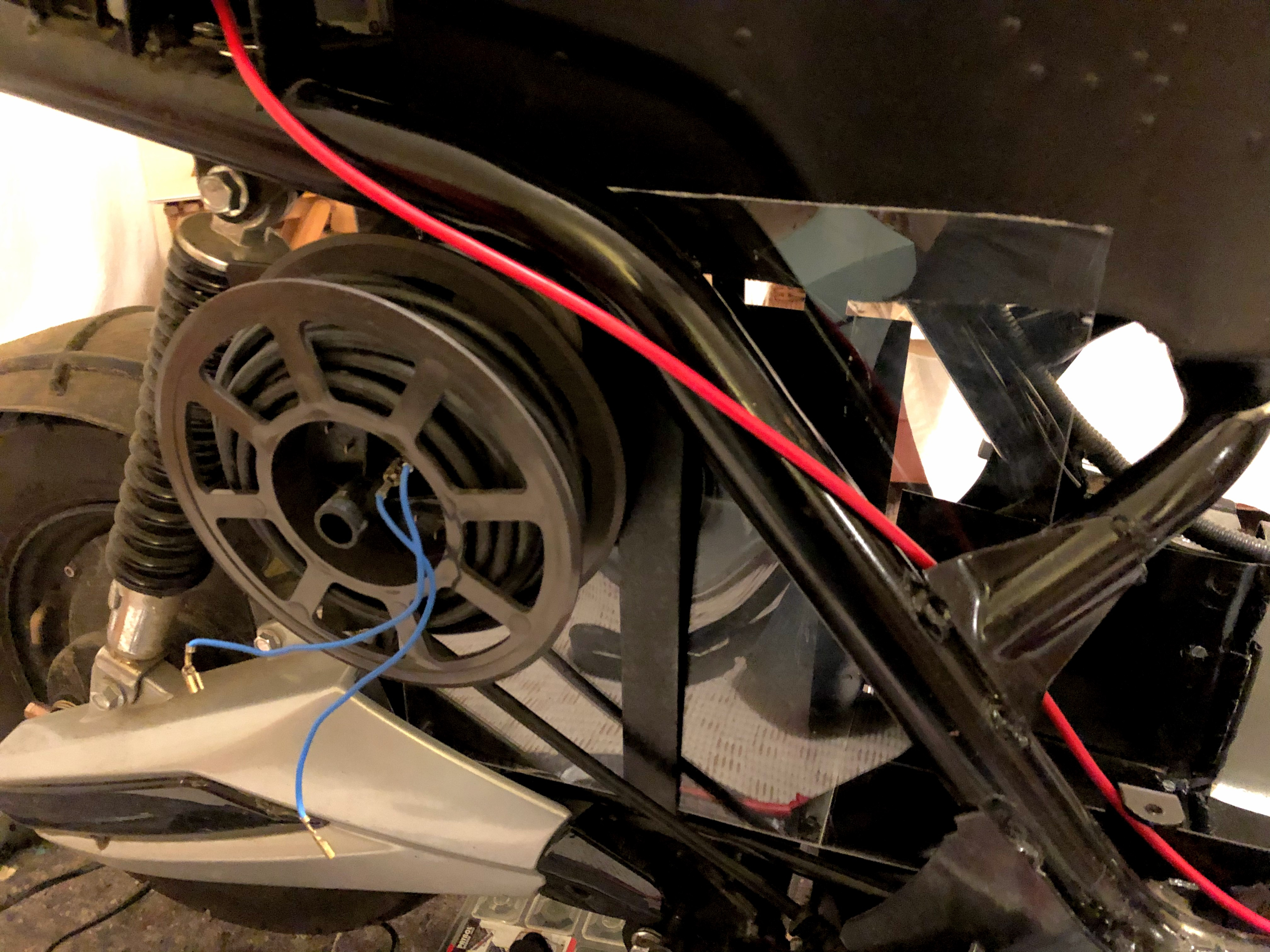 Noch ein wichtiger Tipp zum Schluss: Bitte lasst das ursprüngliche Minus Kabel der Bleiakkus weiterhin angeschlossen, auch wenn ihr ein neueres und ggf. stärkeres (was nicht unbedingt nötig ist) verwendet. Unten am Kabelbaum kann man es trennen und ggf. mit Isolierband oder einer Klemme sichern. Schließt man das alte Kabel nicht mit am Controller Minus an, funktioniert der Roller nach Einbau des Akkus nicht...was mich auch noch mal einige Nerven und Zeit gekostet hat, bis ich mal versuchsweise das alte bereits gekappte Kabel wieder mit dem Minus Pol des Akkus verbunden habe...