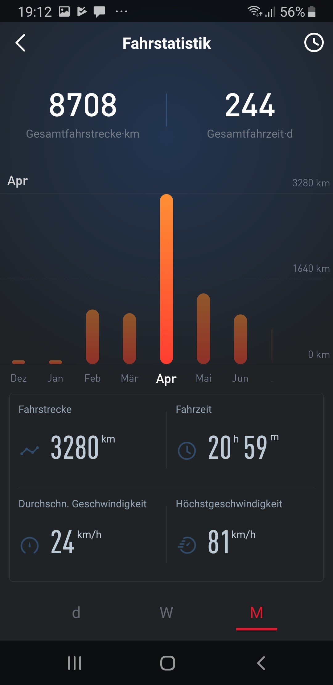 Die KM der ersten beiden Monate sind beim ersten Update genullt worden und in den April geschrieben. Deshalb fehlen auf dem Tachp ca 2500km und er zeigt nur 8700 km an