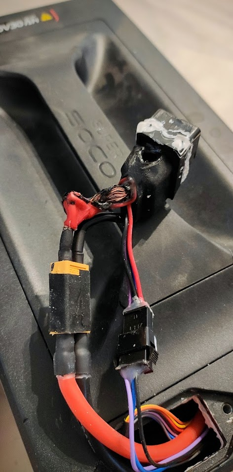 Einen perfekten Stecker habe ich noch nicht gefunden. Der müsste 2 Dicke Pins und 3 dünne für die BMS Leitung haben. Einer der 4 kleinen Pins führt kurioserweise ins Leere :lol:
