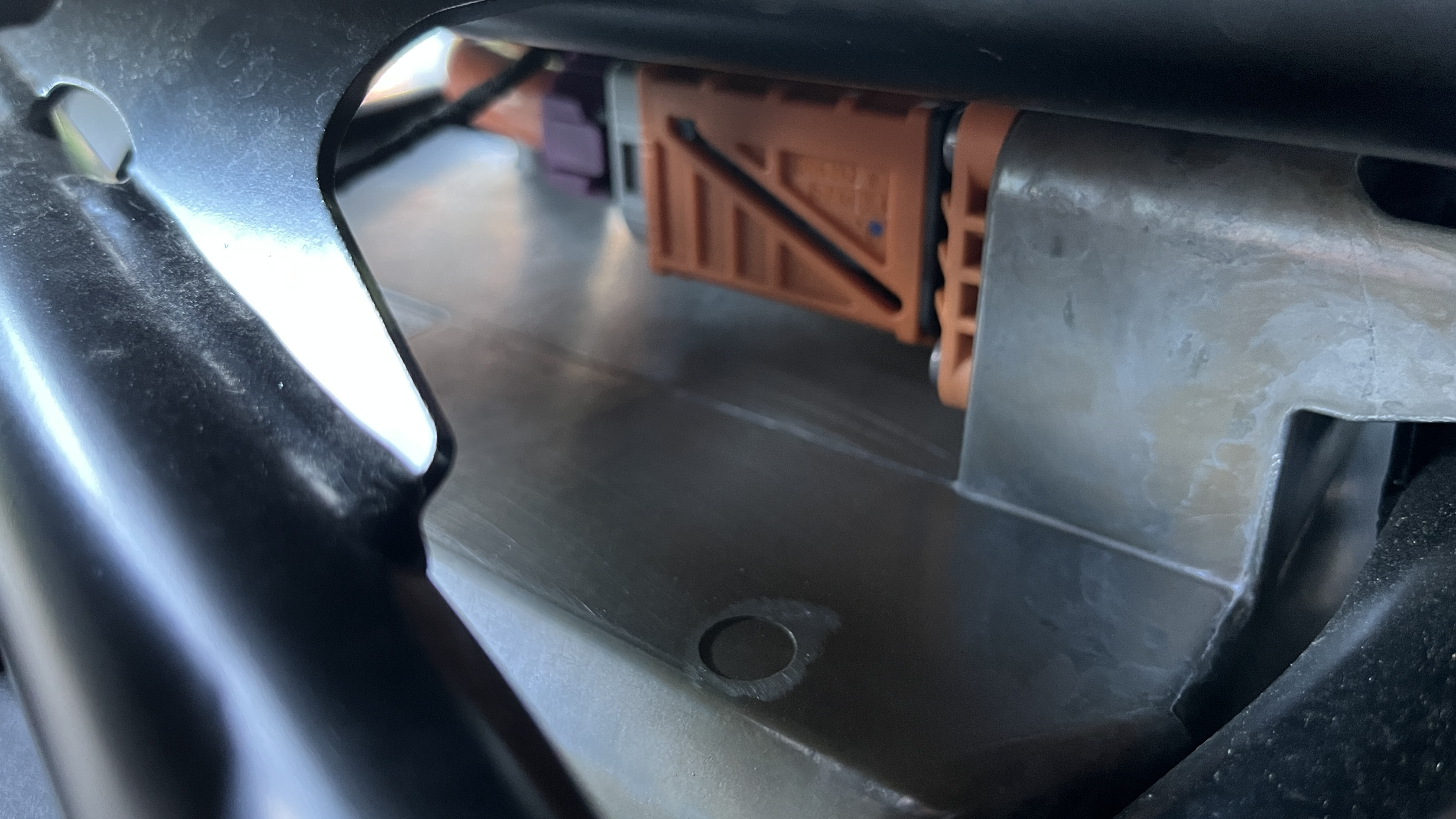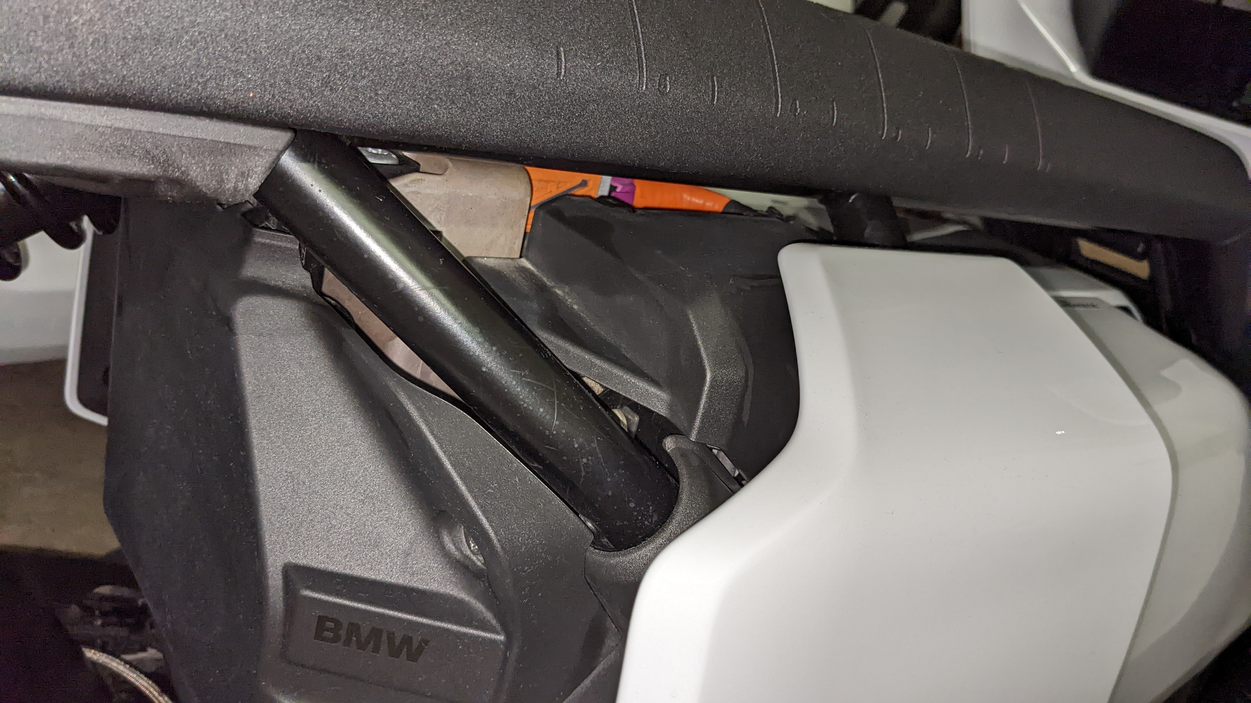 Heute steht mein Scooter schön in der Sonne am Großensee und ich schaue zufällig von der linken Seite unter den Sitz. Sah das nicht mal anders aus?