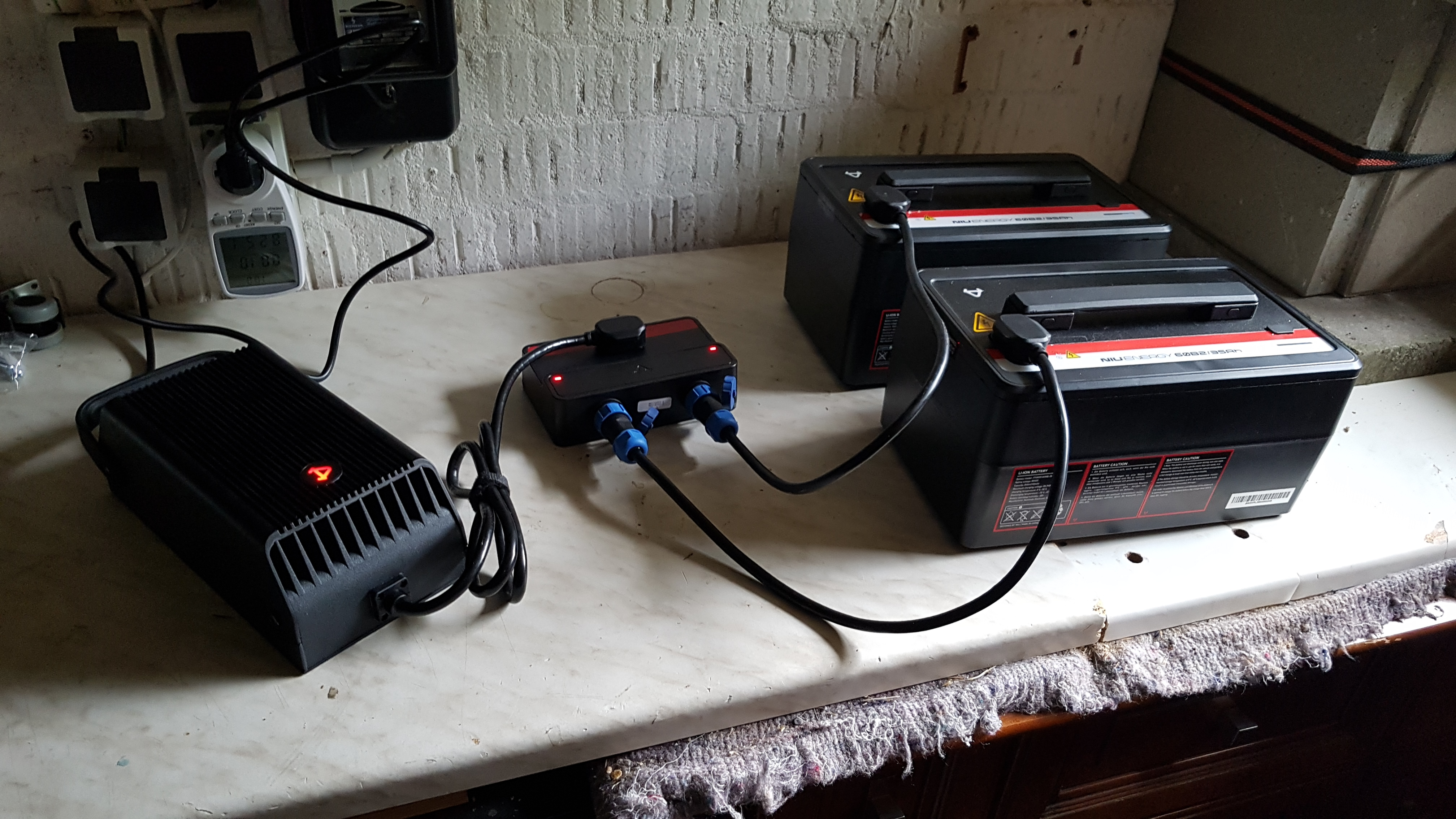 Das externe Laden mit Zwei Akkus unterschiedlicher % über das Schnellladegerät mit der Weiche läuft so ab, der Akku mit der niedriegsten % wird aufgeladen bis beide Akkus die gleiche % haben. Erst ab da wird der andere Akku auch geladen bis zum Ladeschluss. Das Laden im Roller mit beiden Akkus unterschiedlicher % läuft so ab, beide werden gleichzeitig geladen bis zum Ladeschluss.