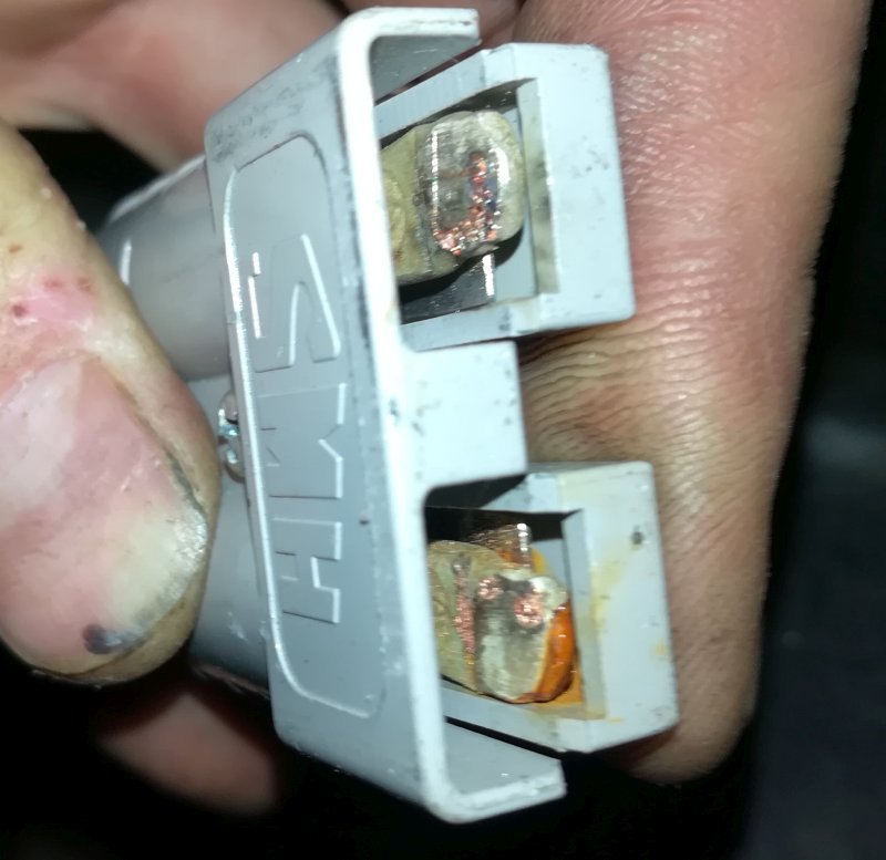 Die Spuren an der Spitze der Kontakte sehen von der Lage nach fehlendem Precharge aus. Wenn die Stecker zusammengesteckt und verriegelt sind, berühren sich die Kontakte weiter hinten im Stecker.