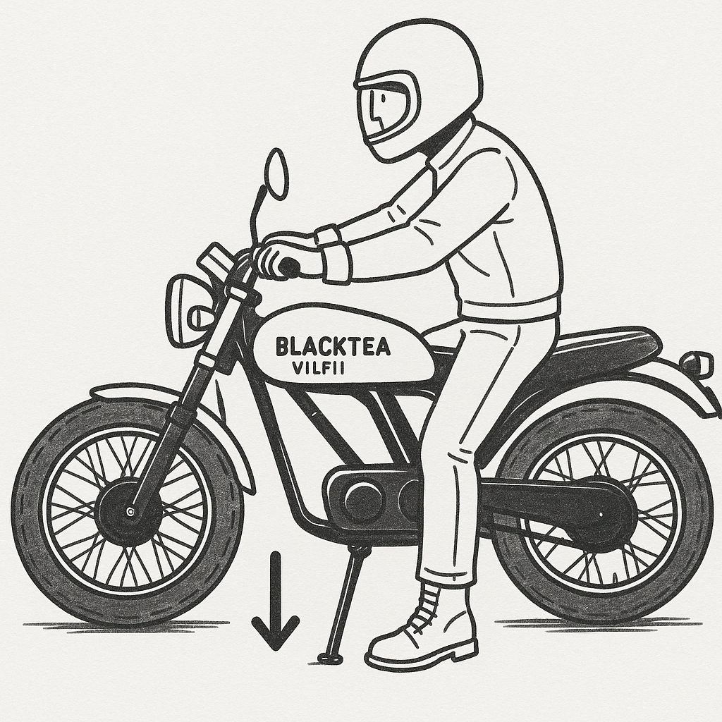 Bild: So stellt das LLM das vor... Edit, andere Motorraeder haben so einen kleine lasche, oder einen steg, die beim runtermachen mit dem stiefel helfen, aber der cnc gefreaeste staender von BTM ist so clean, da kriegt man schwer 'grip"