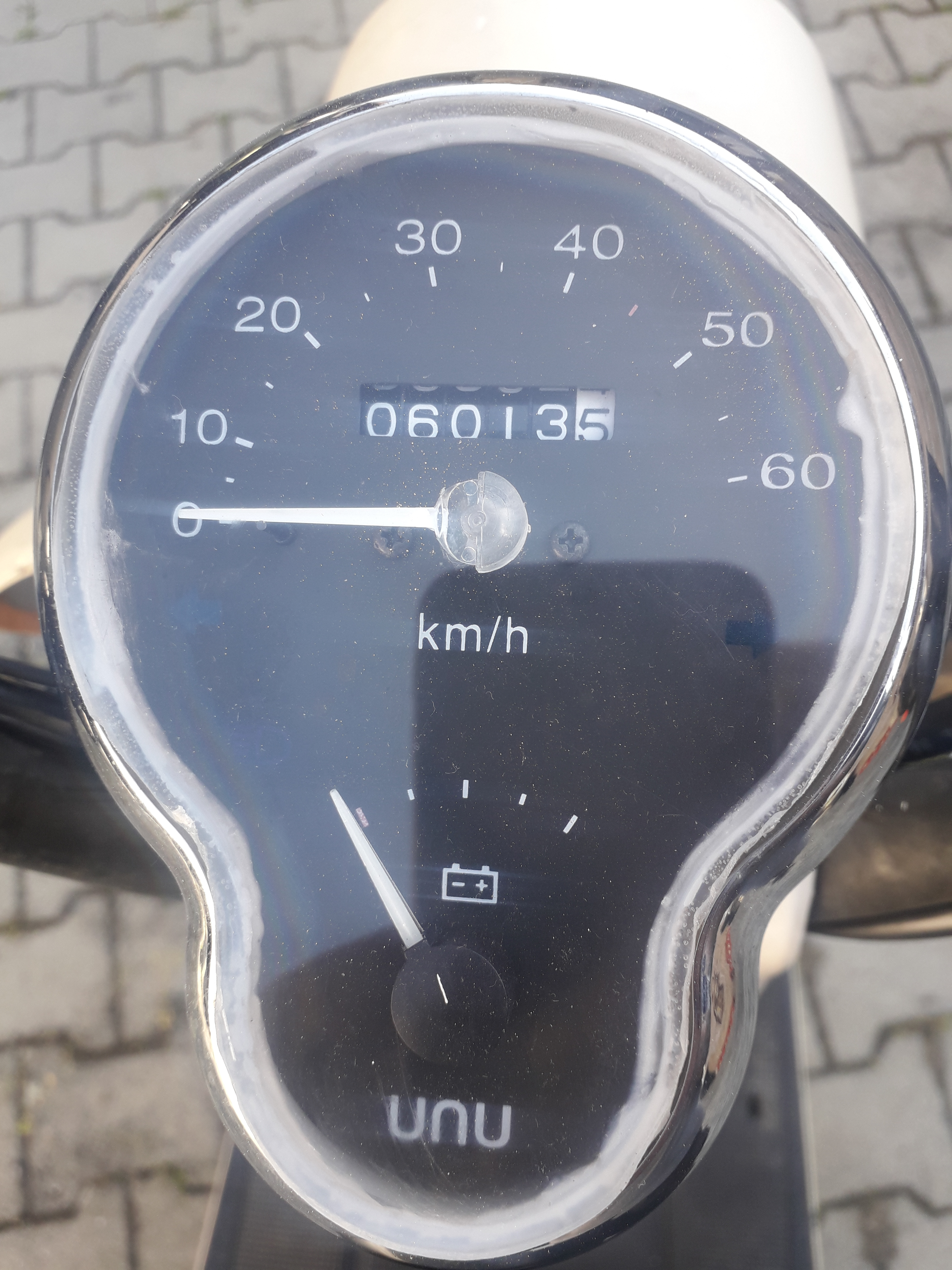 Ich habe am Freitag in HH einen blauen UNu gesehen mit 2900 km auf dem Tacho, das könnte man gerade noch so erkennen.