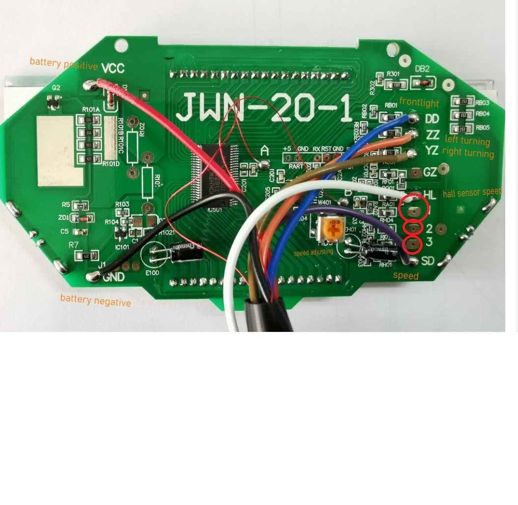 So, ich habe auf dem Bild 1. 3 zusätzliche Kabel gelötet für Gang anzeige.