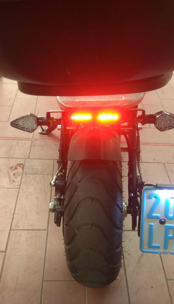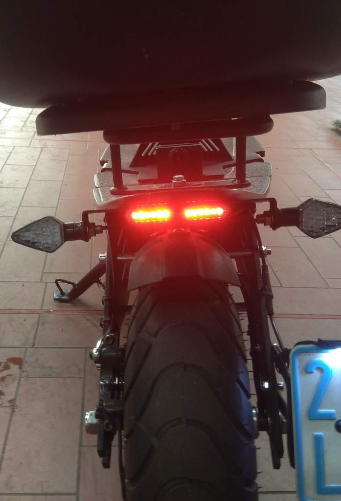 Die Zusatzlichter habe ich absichtlich im Standlichtbetrieb etwas dunkler geschalten, damit diese als Bremslicht dann extra extrem viel heller werden. Dachte das ergibt einen zusätzlich Signaleffekt.