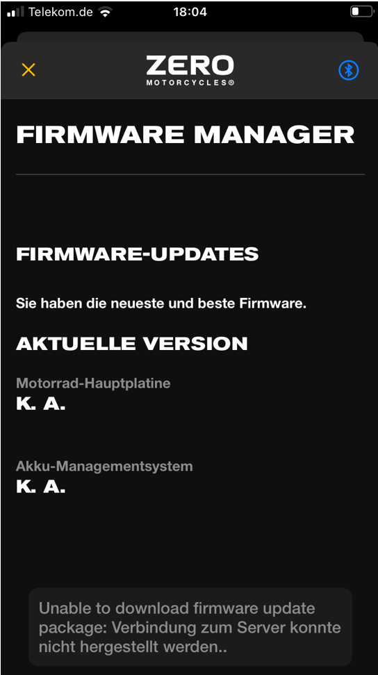 - Ich muss mir das Menü "Firmware" tatsächlich anschauen, wenn das Bike verbunden ist ! (hätte mir ja klar sein müssen)