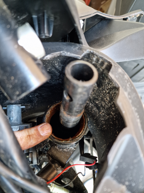 Ich meine ich erwähne hier ständig, dass ich, seit ich den Roller habe, glaube ich nur 3 Mal bei Regen gefahren bin. Im März 2022 gekauft, lasse ich ihn seit August 2022 bei schlechtem Wetter stehen. Der Roller steht auch jeden Tag überdacht im Trockenen. Wie das dann angehen kann ist mir schleierhaft, zumal es das obere Lager ist.