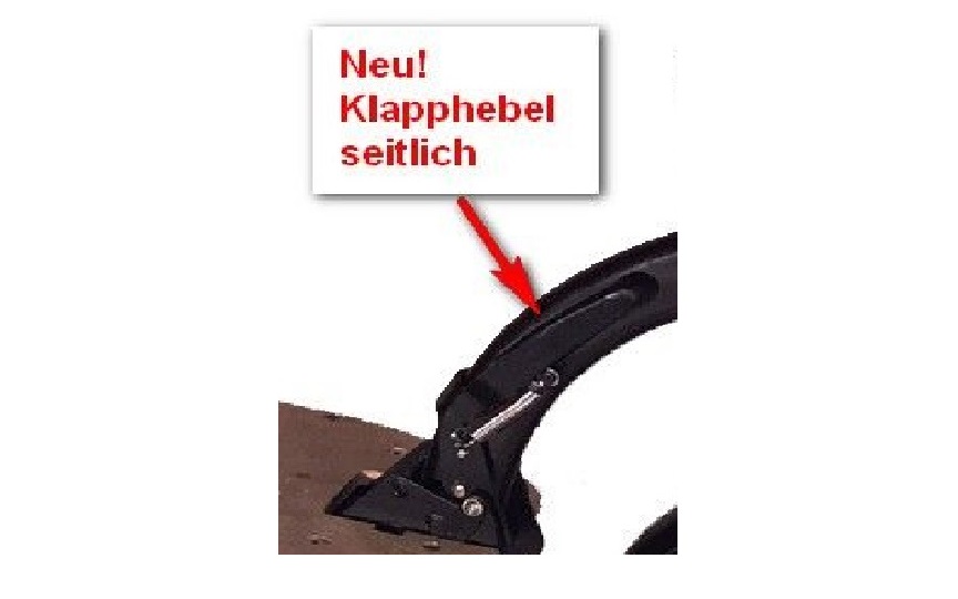 Info 04.03.2015, 19.15: Wie ich schon auf dem ersten Foto (Seite 1) richtig erkannt hatte, gibt es einen neuen Klapphebel für den Klappmechanismus. Dieser ist nun seitlich angebracht (rechte Seite in Fahrtrichtung). Dadurch wird nicht nur die Verletzungsgefahr bei einem möglichen Sturz verringert, sondern das Fahrzeug bildet auch optisch eine flüssige Einheit. Da steht nix.