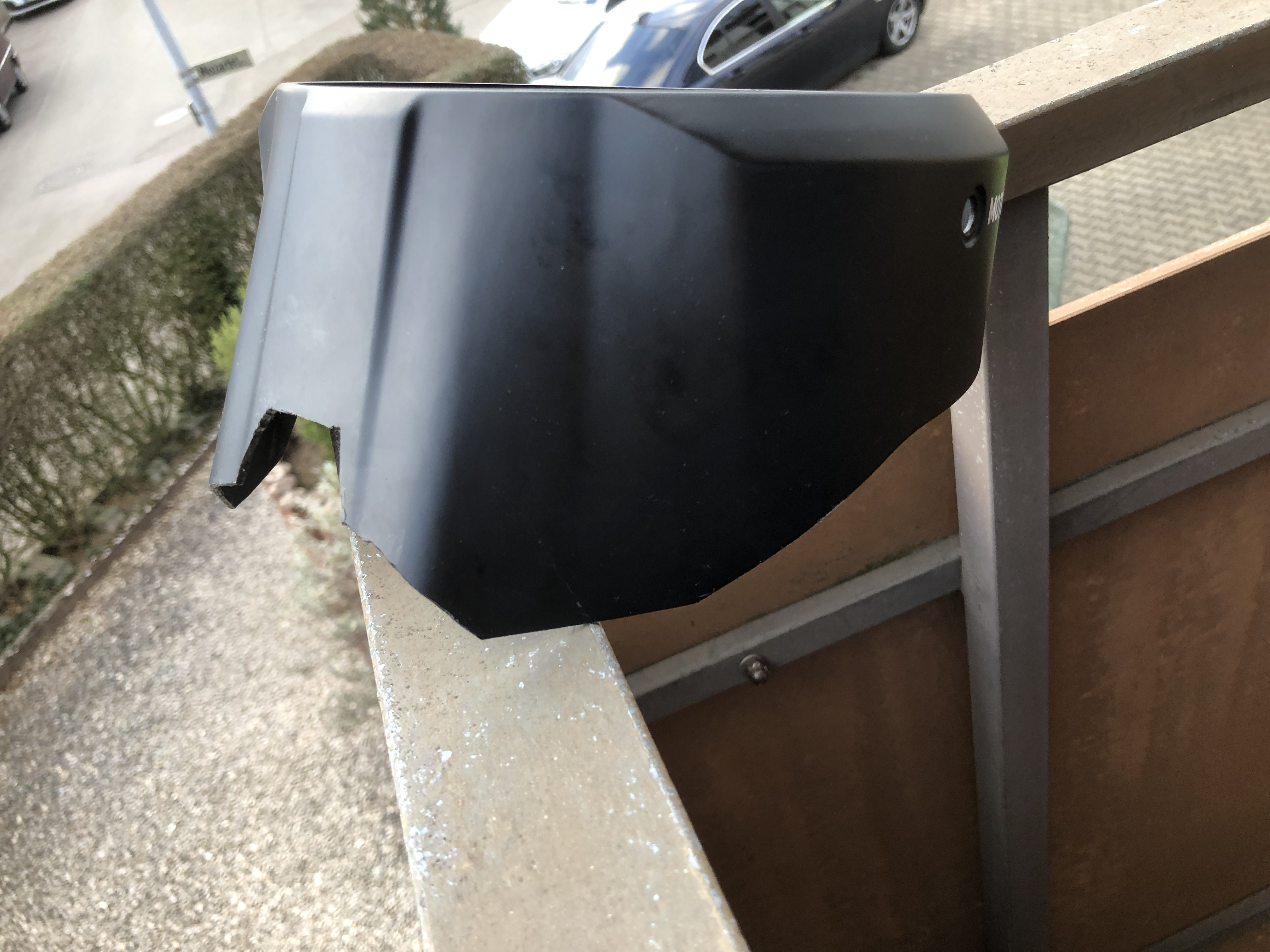 Dann habe ich gleich die Motoism Maske angepasst, wobei ich oben an der Hinterkante wohl etwas mehr wegsägen und wegbrechen musste als Gremo, um weit genug nach Hinten zu kommen, und noch nicht endgültig verputzt: Und Deine Halterkürzung Gremo konnte ich auch nachvollziehen, werde ich auch machen müssen!
