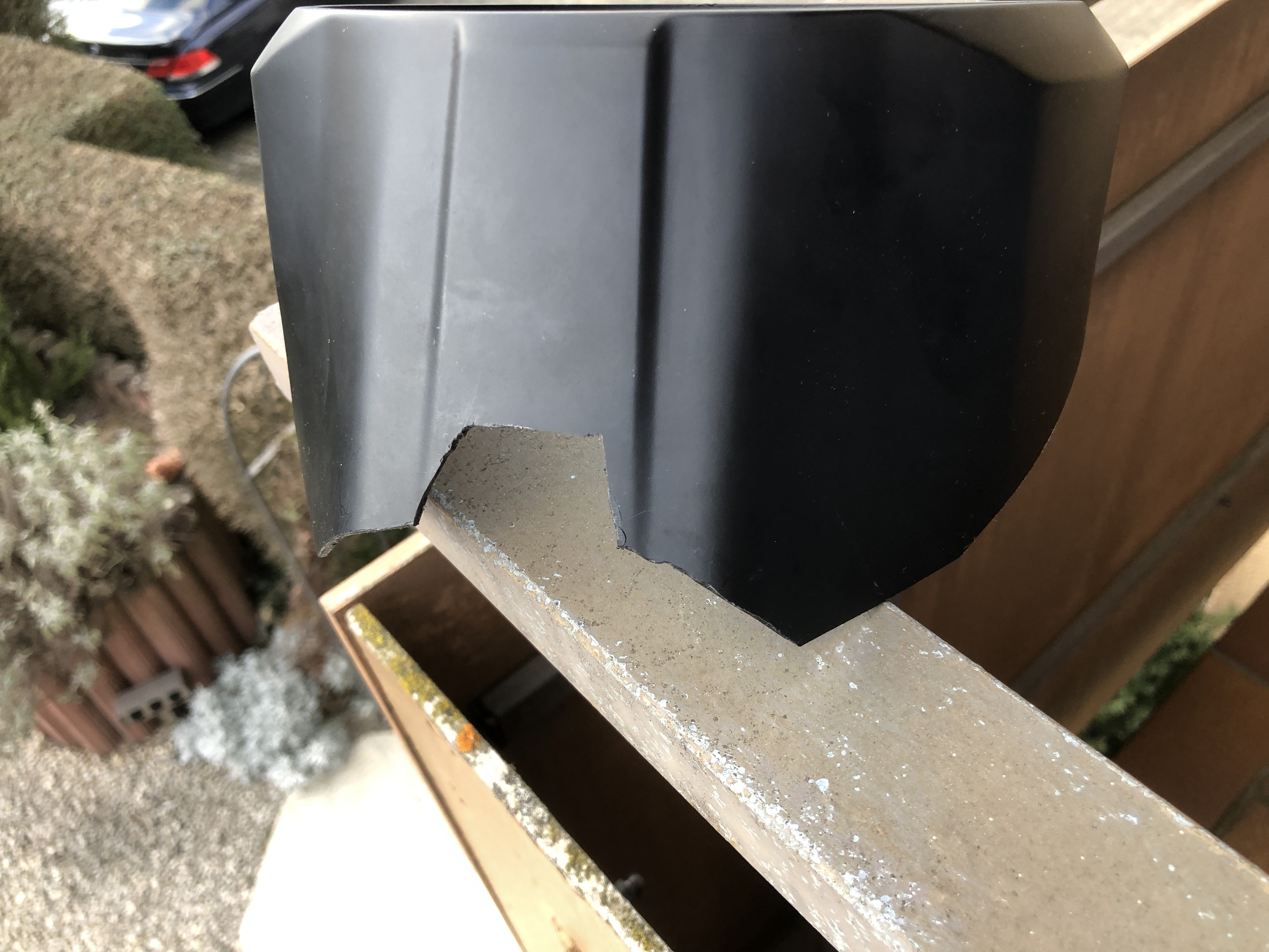 Die Maske ist übrigens im SLS 3D-Druck gefertigt (Selective Laser Sintering), was fast die Materialeigenschaften vom gespritzten Werkstück ergibt, und außen wohl Sandgestrahlt wurde, um das matte und schichtfreie Außenfinish zu erzeugen. Trotzdem ist auch mir beim Sägen eine Stelle eingerissen - leicht zu sehen im zweitletzten Bild, in Bildmitte, abschließend mit dem inneren Rand des Balkongeländers.