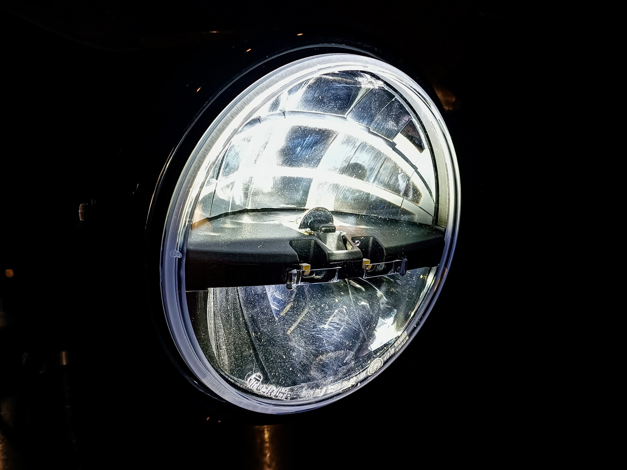 Einen 7" Scheinwerfer von TruckLite hatte ich schon seit fast drei Jahren herumliegen, jetzt habe ich mir auch mal den Halter von Louis besorgt und mir den Kilometer mehr Reichweite durch geringeren Stromverbrauch gesichert