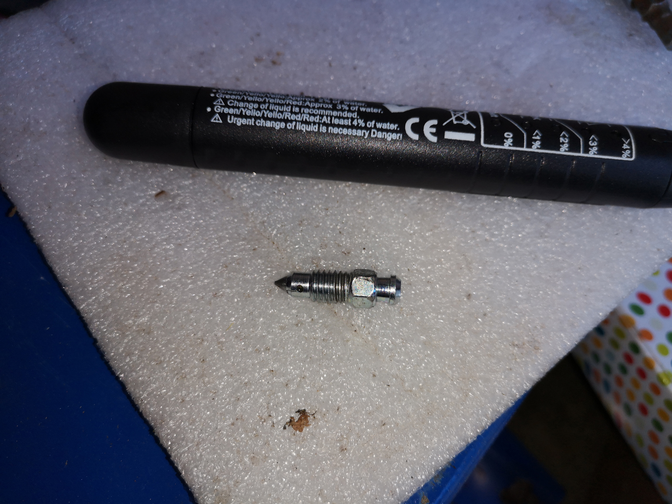 Also habe ich mir erstmal noch ein Bremsenentlüfterventil besorgt, um ohne zusätzliche Hilfe die Bremsflüssigkeit wechseln und das Bremssystem entlüften zu können.