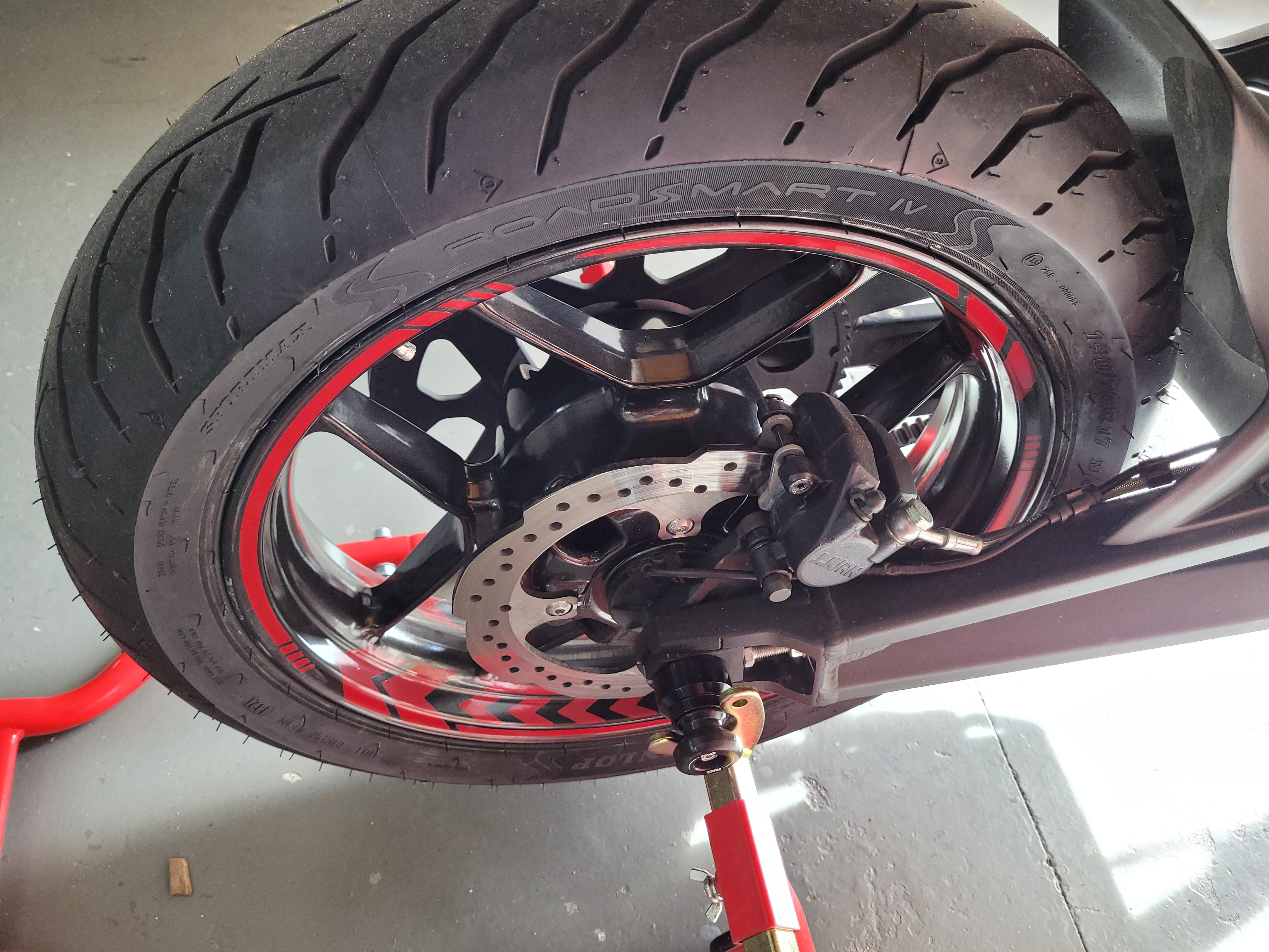 Man beachte auch, die Selbstgemachten Felgenaufkleber in FXE rot :-)