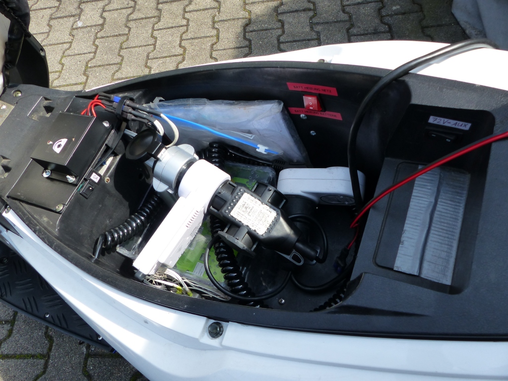Heute nachmittag habe ich jetzt das E-Pferdchen vollends "gesattelt", sprich Reifendruck nachgefüllt (hinten war er fast schon platt, kein Wunder war es kippelig in Kurven :lol: ) und den Stummelstecker vom Schaltnetzteil mit Energiemesser/Logger, Zeitschaltuhr und Stromnetz verbunden, sowie die Batterieheizung für Netzbetrieb scharfgeschaltet.