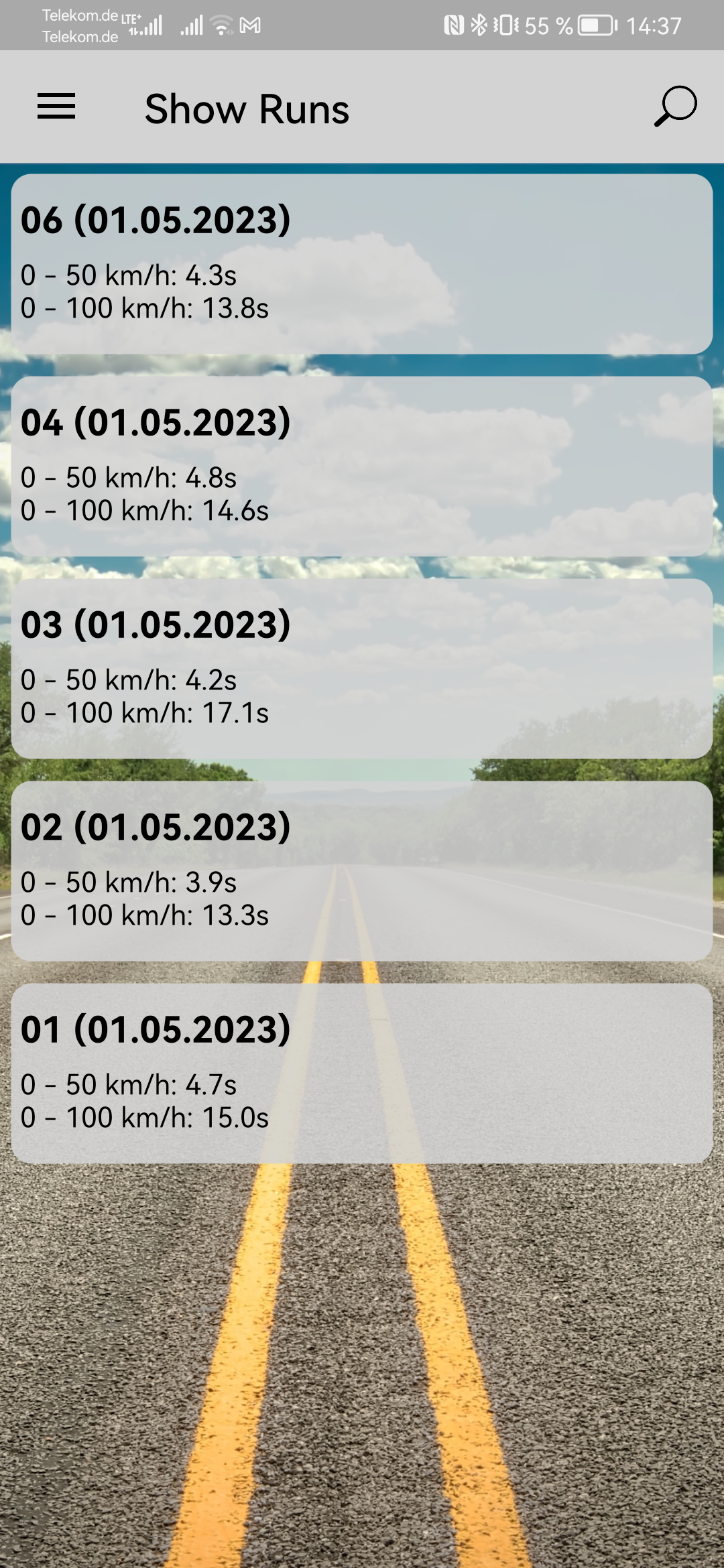 Was man bei den Handy GPS Werten mit rund 1Hz noch beachten muß, die "Start" Erkennung kann das Ergebniss der 0-50 Messung doch deutlich beeinflussen.