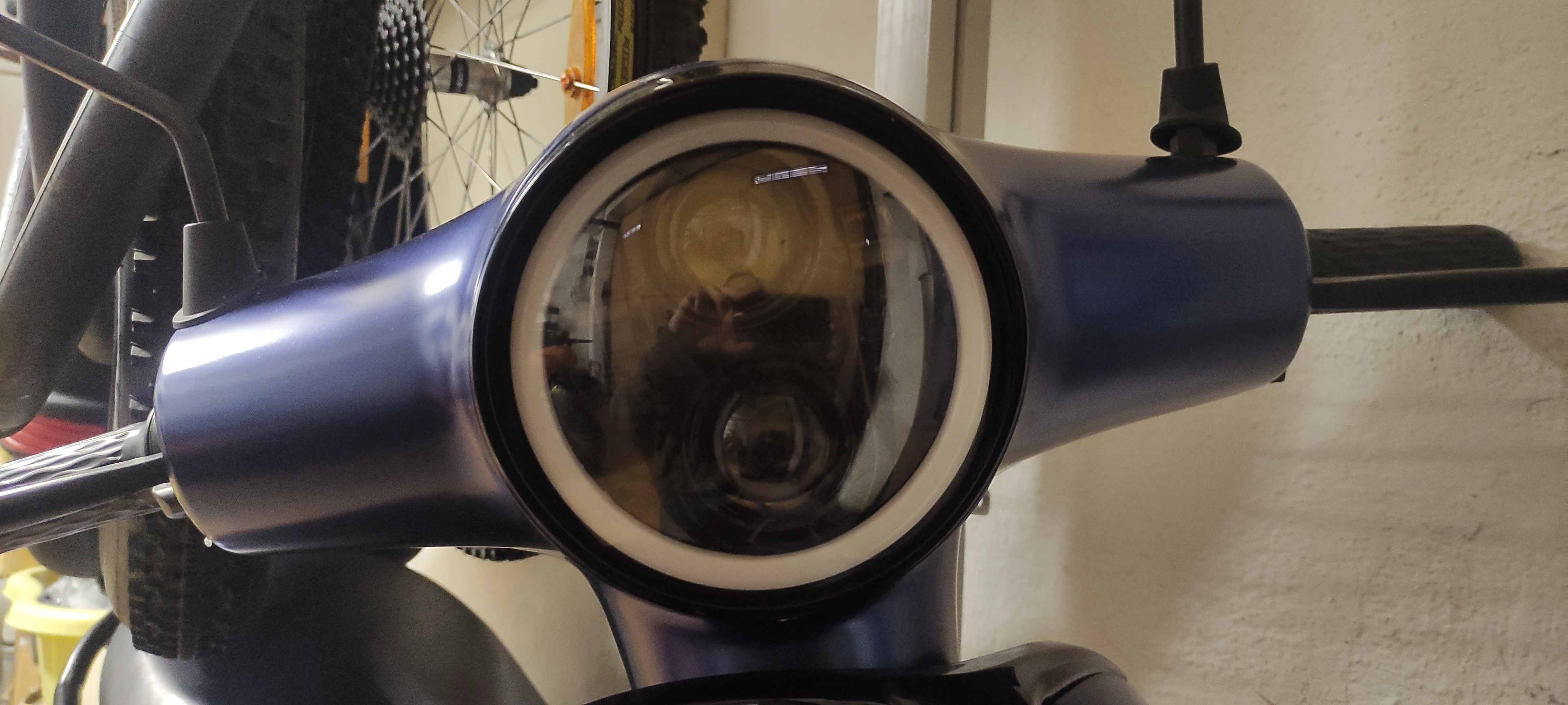 Es wird ein extra Thema geben, da ich eine plug´n play Lösung anstrebe, wo man den Controller einfach nur durch umstecken mit einem Adapter tauschen kann. Das Erste was ich aber gemacht habe war der Austausch des LED-Kerzenlichts vorne :lol: Das ist ja eine Zumutung gewesen bei Dunkelheit. Mit etwas Bearbeitung und 3D-Druck der Scheinwerferhalterung habe ich eine gute Lösung gefunden, nen vernünftigen LED Scheinwerfer einzubauen.