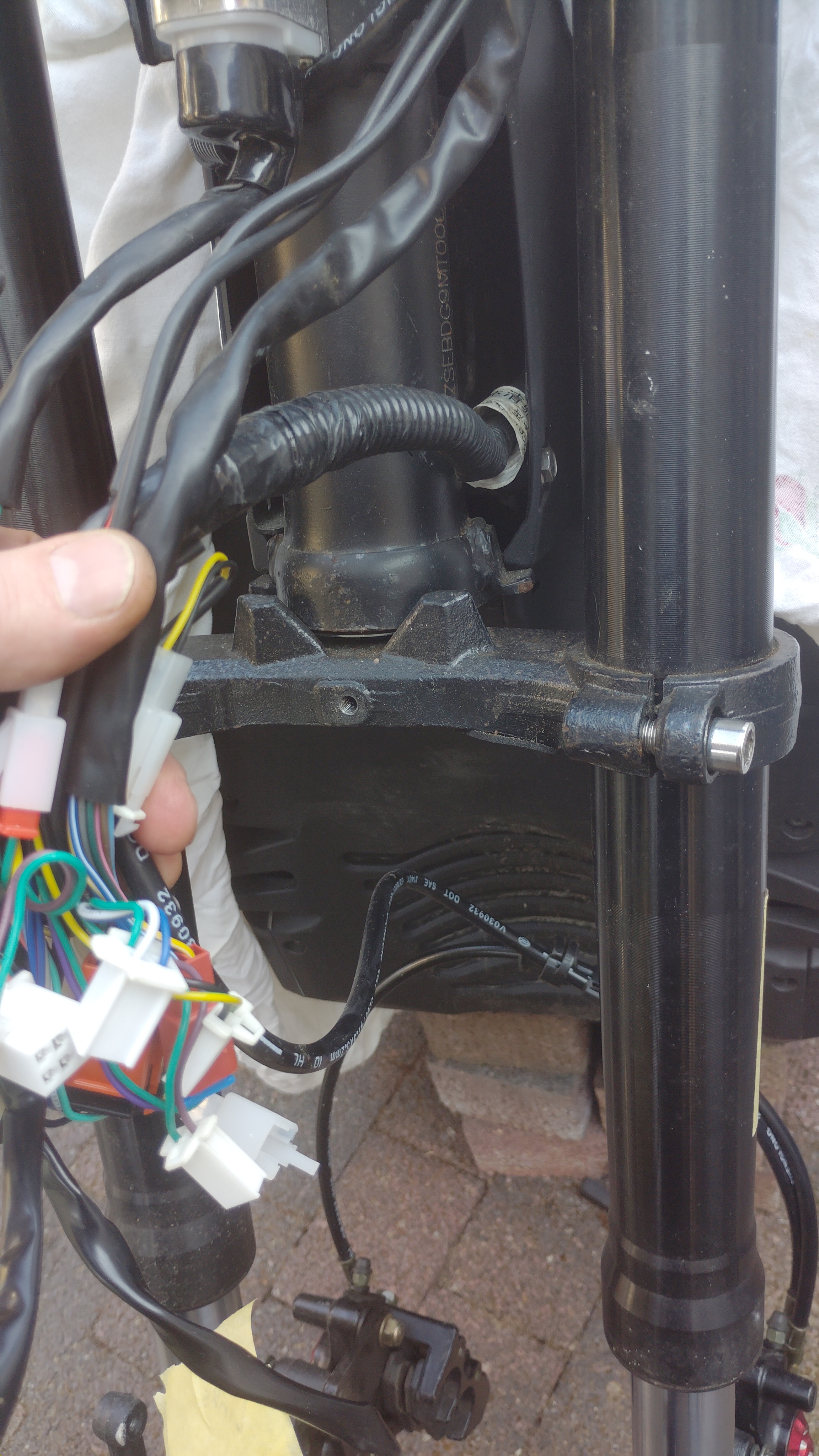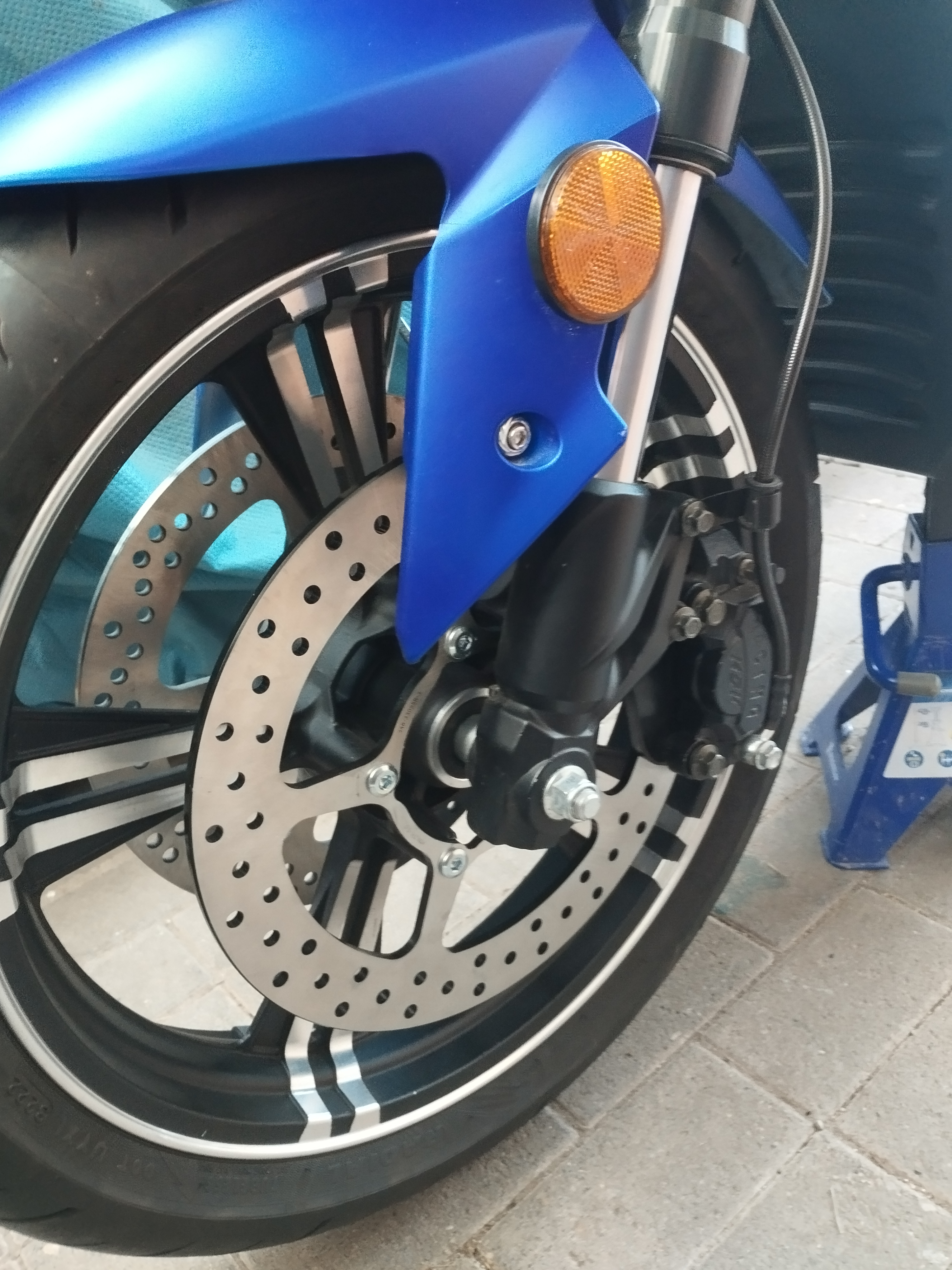 So, heute habe ich das schöne trockene Wetter genutzt um draußen unterm Vordach an meiner Odin auch mal die vorderen Bremsscheiben auszutauschen.