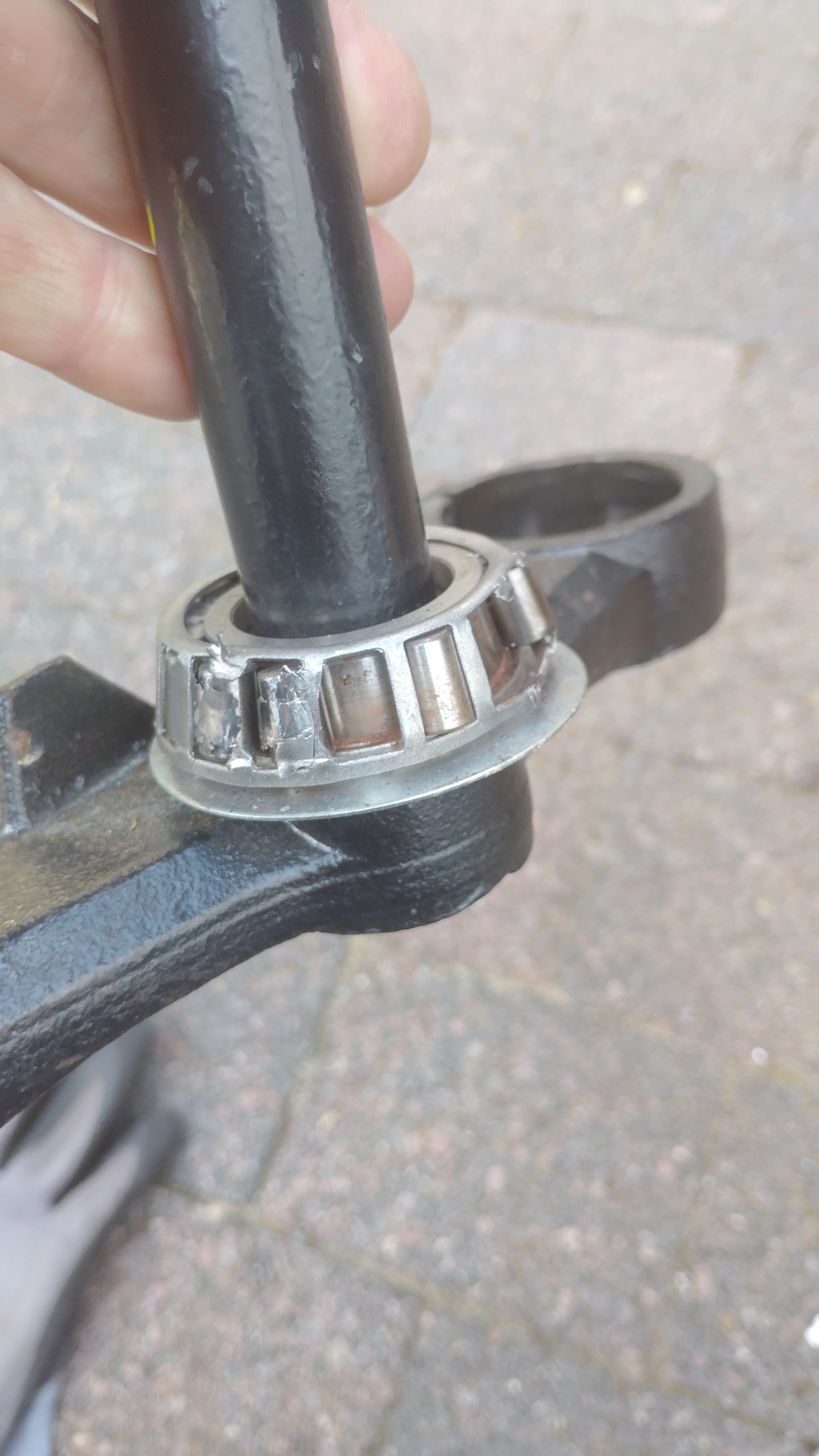 An dem oberen Lager waren Rückstände von Fett zu erkennen, das untere Lager allerdings war komplett trocken. Da wurde wohl bei der Montage nicht sehr sorgfältig gearbeitet.