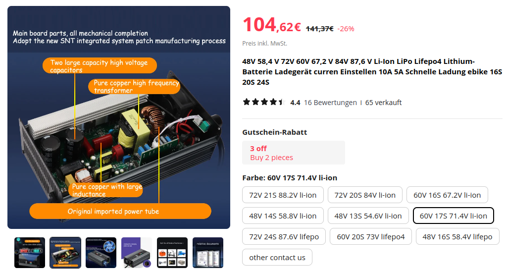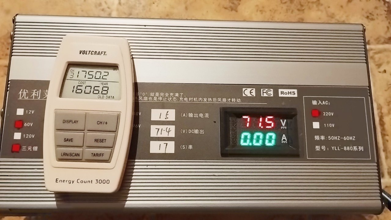 Das ist ganz normal während der anfänglichen Konstantstrom Ladephase! Es is ja keine Konstant-Leistungsphase… DEI Batteriespannung steigt ja an, je voller der Akku wird. Gemäß P=UxI steigt somit die Ladeleistung an bis Richtung Ladeschlussspannung.guewer hat geschrieben:Seltsam bei dem Ladegerät ist, dass die Ladestärke während des Ladevorgangs nicht kontinuierlich abnimmt, indem die Amperezahl zurückgefahren wird, sondern, im Gegenteil, gegen Ende immer weiter zunimmt (Amperezahl bleibt bis zuletzt bei 12 A)! Stresst das nicht den Akku übermäßig und verkürzt dessen Lebensdauer?