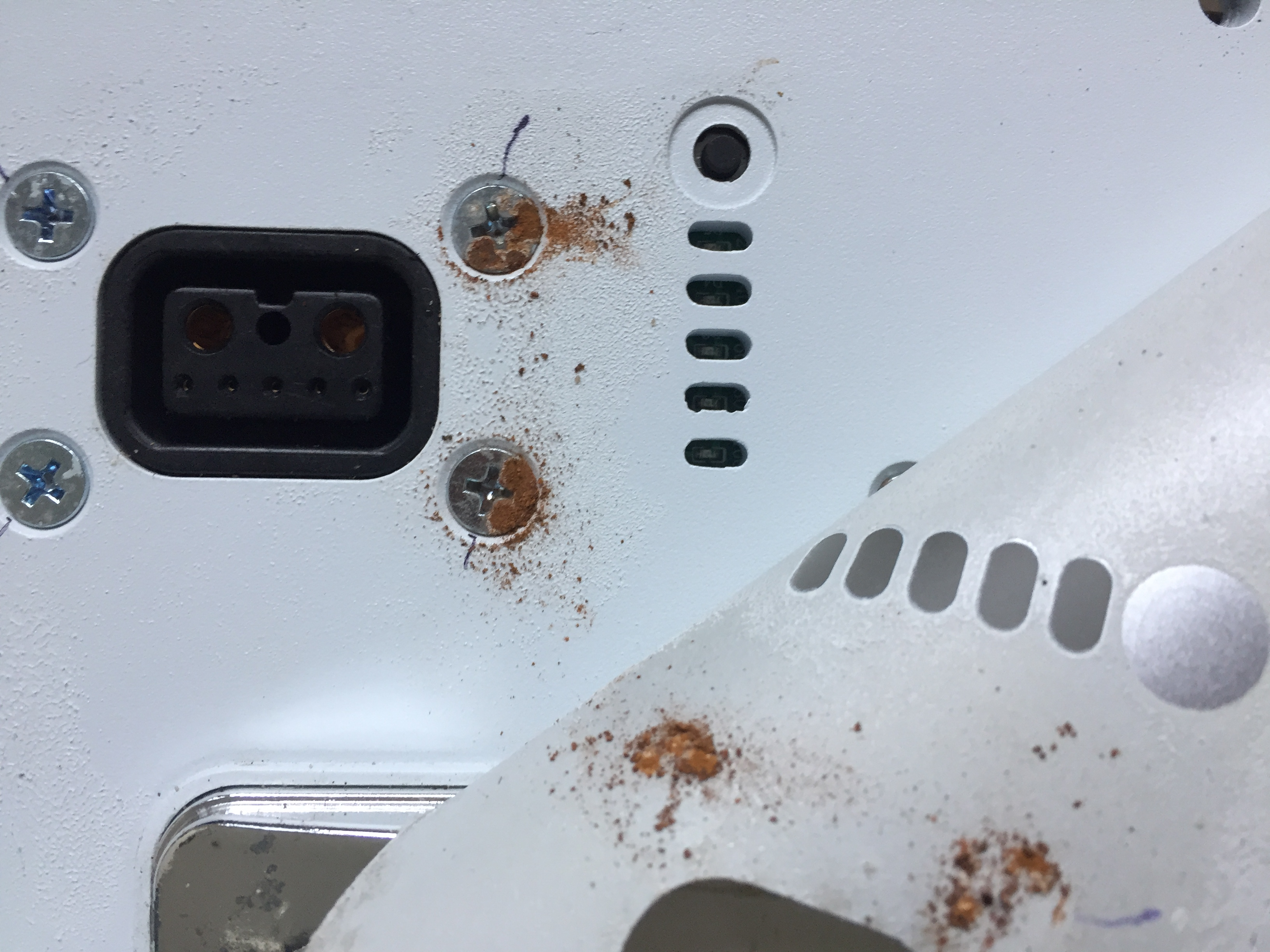 Auf jeden Fall ein gutes Beispiel warum defekte Akkus nicht geladen oder verschickt werden sollten. Bin jedenfalls am überlegen was ich damit machen soll. Drinnen bleibt der jedenfalls nicht. Die Rostsuppe im Gehäuse ist übrigens leitend: 10 kΩ bei 1cm Messspitzenabstand.